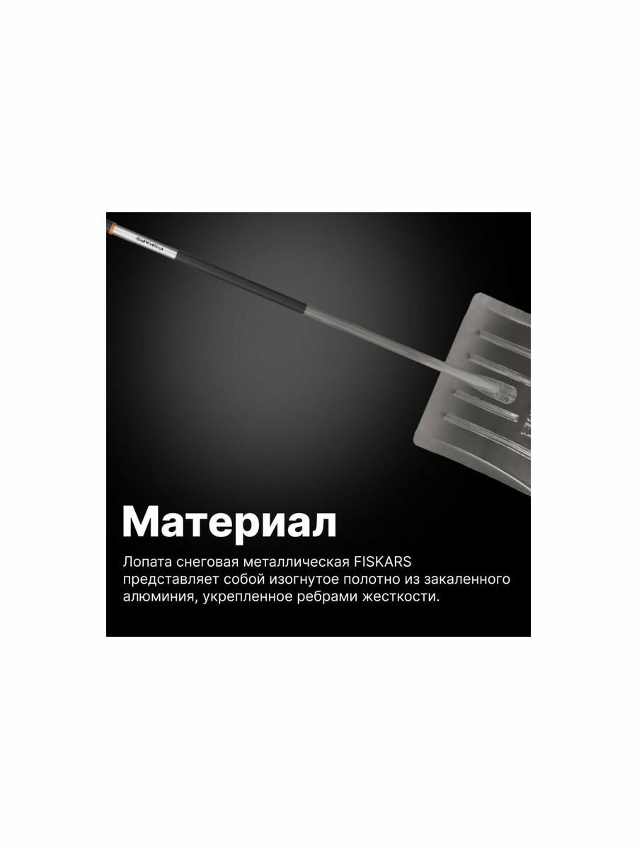 Снеговая лопата Fiskars представляет собой изогнутое полотно из закаленного алюминия, укрепленное ребрами жесткости и надежно прикрепленное к алюминиевому черенку с пластиковым покрытием.Преимущества D-образная рукоятка хорошо лежит в ладони и облегчает рабочий процесс Инструмент отличается прочностью, удобством и долгим сроком службы.
