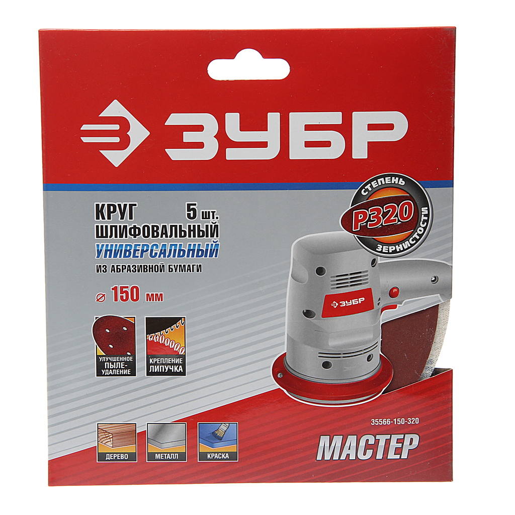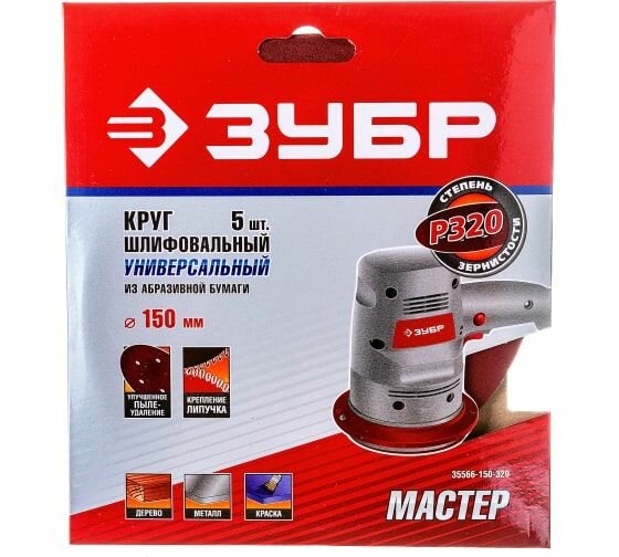 | Наименование модели | круг шлифовальный универсальный для эксцентриковых шлифмашин 35566-150-320 |