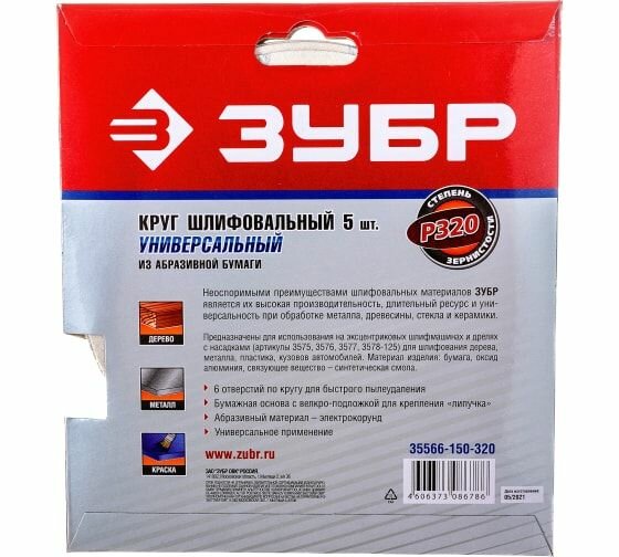 Круг шлифовальный универсальный для эксцентриковых шлифмашин "Зубр" - это инструмент, который обеспечивает высокое качество обработки различных поверхностей. Основа этого инструмента - бумага, а ширина составляет 15 см. Форма листа - круглая, диаметром 150 мм.