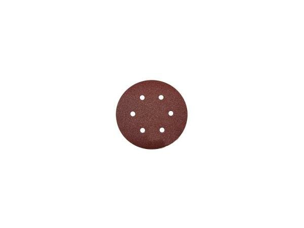 Инструмент оснащен шестью отверстиями, расположенными по кругу, благодаря чему достигается равномерное распределение давления во время работы. Зернистость шлифовального листа составляет 320 единиц, что позволяет добиться гладкости поверхности даже при обработке грубых материалов.