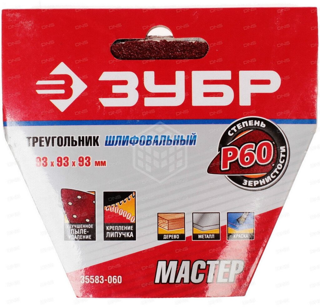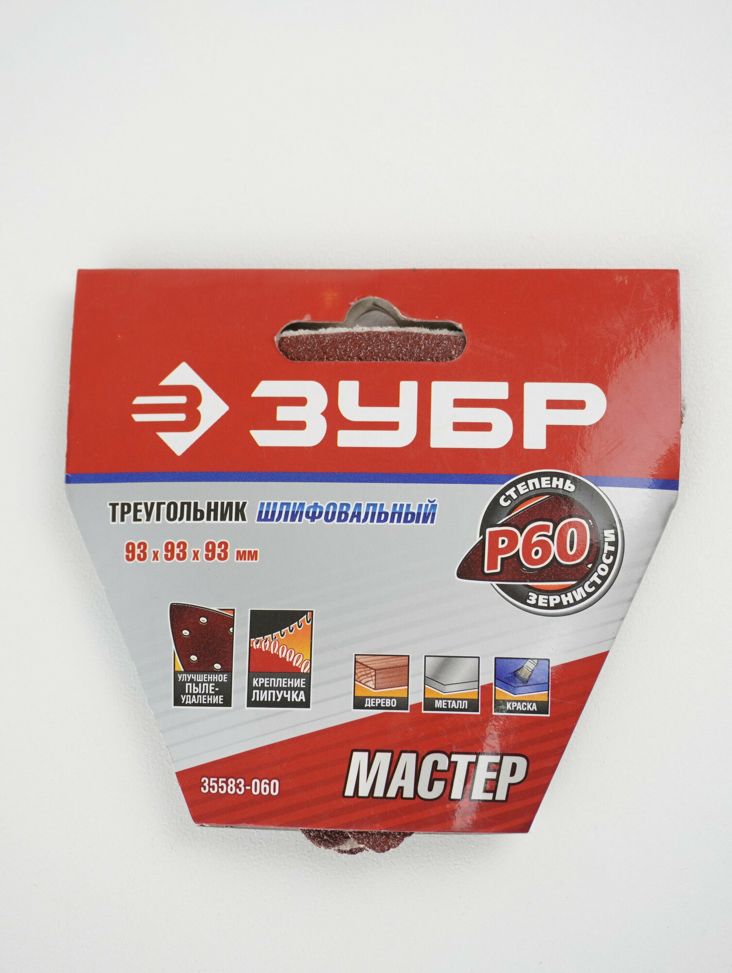 | Наименование модели | треугольник шлифовальный "МАСТЕР" универсальный на велкро основе, 6 отверстий, Р60, 93х93х93мм, 5шт |