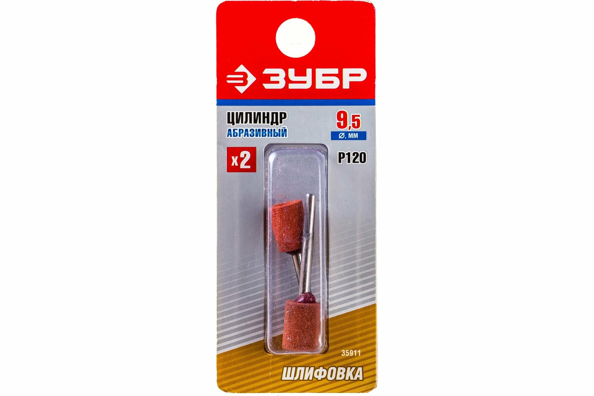 Цилиндр абразивный шлифовальный на шпильке Зубр P 120, d 9,5x12,7х3,2 мм, L 45мм, 2шт