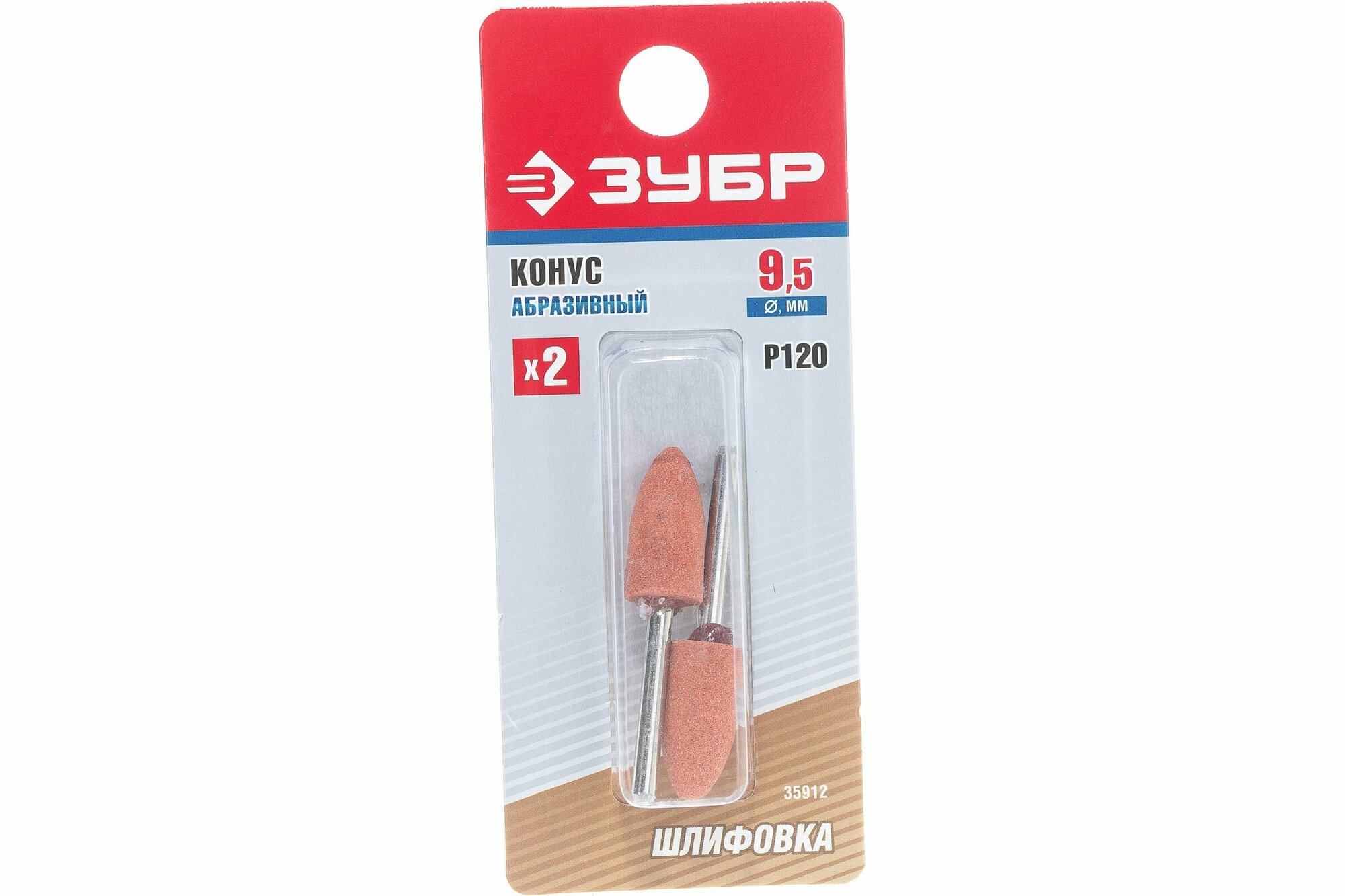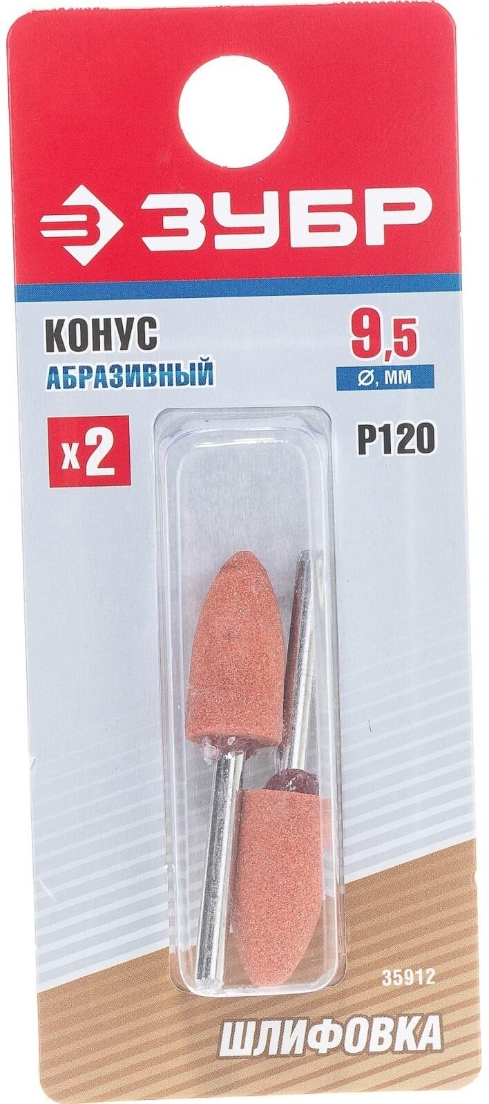 Конус абразивный шлифовальный на шпильке Зубр P 120, d 9,5x19,0х3,2 мм, L 45мм, 2шт