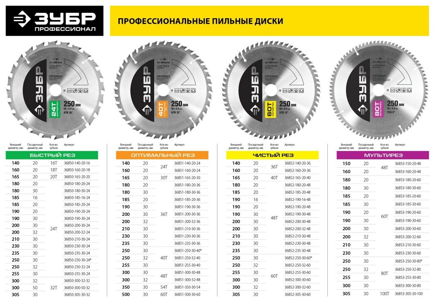Пильные диски ЗУБР ПРОФЕССИОНАЛ имеют увеличенные режущие зубья, изготовленные из максимально очищенного твердого сплава, благодаря чему значительно увеличивается рабочий ресурс и эффективность работы