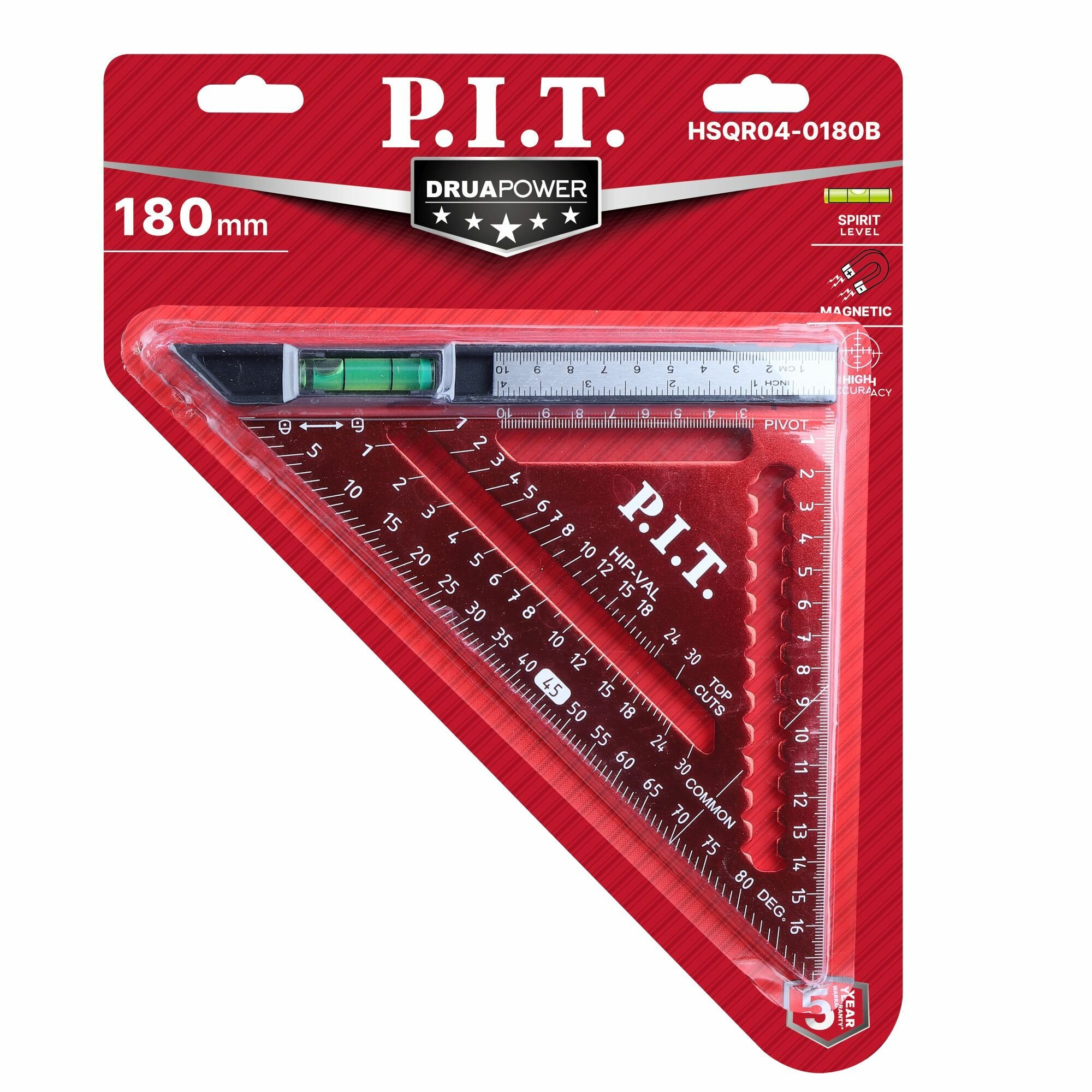 Угольник Свенсона P.I.T. метрический плотницкий с пузырьковым уровнем 180 мм HSQR04-0180B