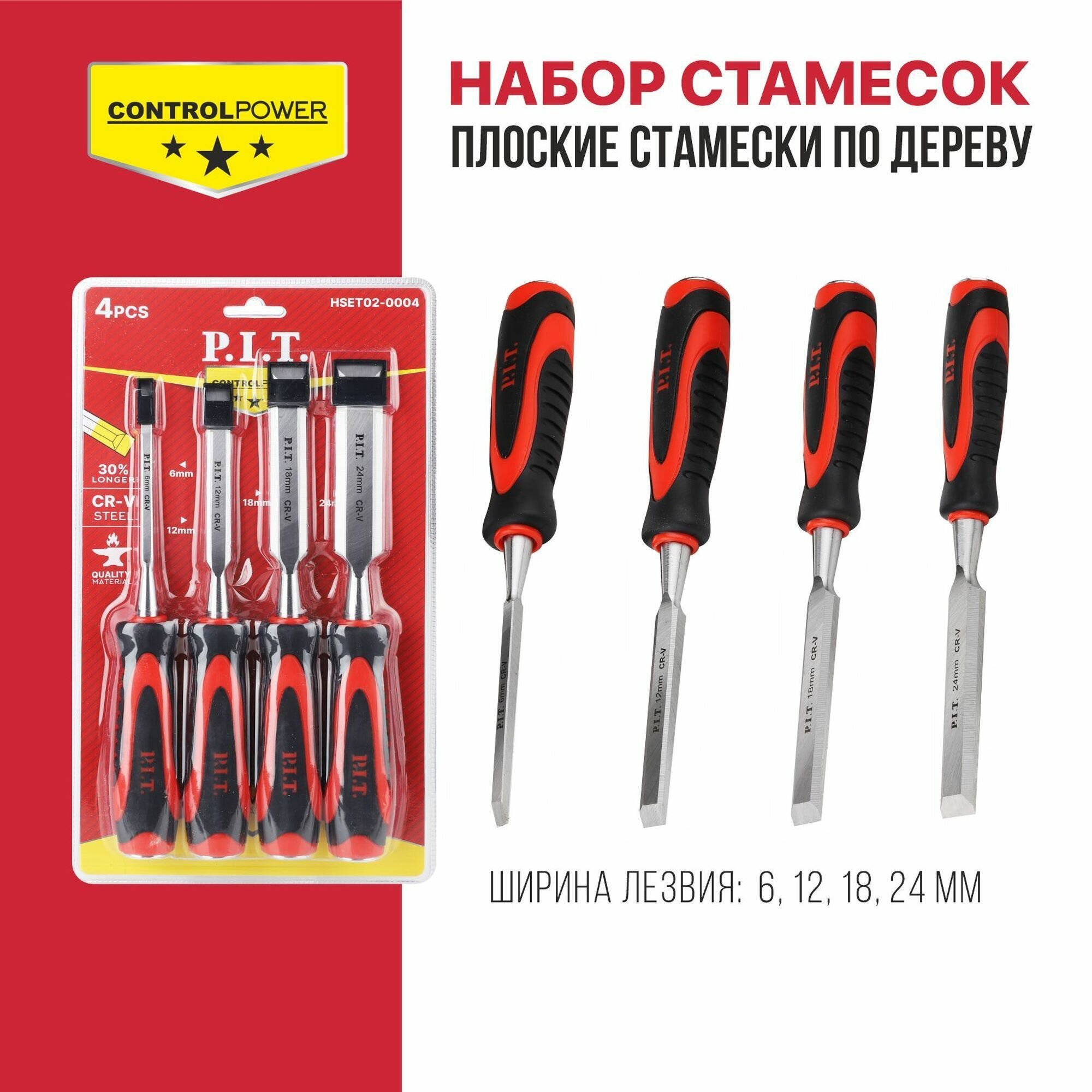 Набор стамесок по дереву плоские P.I.T. 4 шт. 6-12-18-24 мм 265х135мм CONTROL HSET02-0004