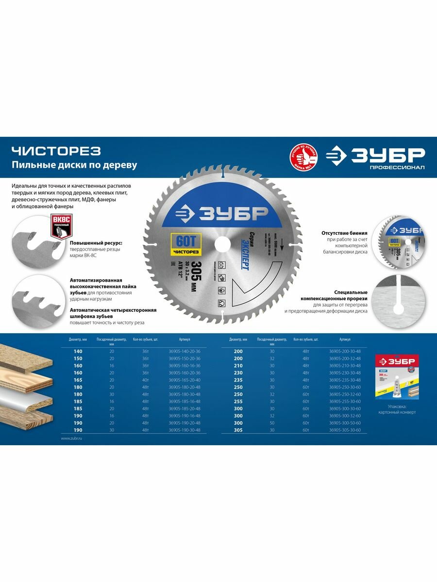 Пильный диск по дереву ЗУБР 36905-300-32-60