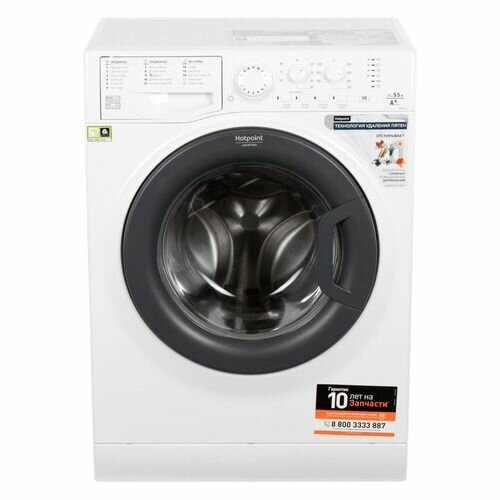 Стиральная машина Hotpoint-Ariston – полноразмерное отдельно стоящее устройство с фронтальной загрузкой. Корпус агрегата, выполненный в современном дизайне, гармонично впишется в любой интерьер. За один сеанс в модель можно загрузить до 5,5 кг белья, чего вполне достаточно для семьи из 3-4 человек. Через открывающийся на 180 градусов люк диаметром 34 см удобно вынимать и закладывать различные вещи. Благодаря компактным габаритам (85 см – высота, 60 см – ширина, 43 см - глубина) данная модель легко разместится даже в небольшом помещении.