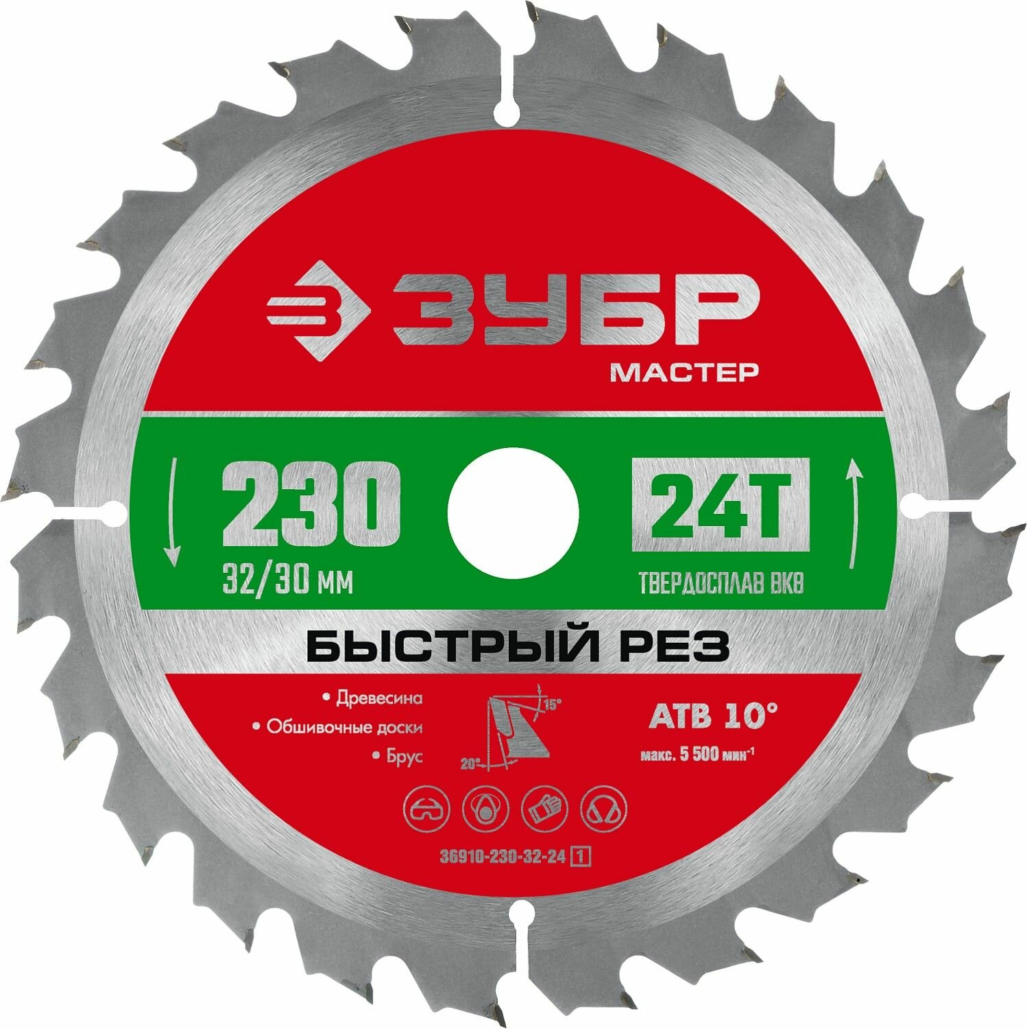 Грубые черновые супербыстрые распилы: древесина любых пород, ДСП, МДФ, фанера. • Твердосплавные резцы изготовлены из сплава ВК8. • Автоматическая трехсторонняя шлифовка зубьев. • Компенсационные прорези исключают внутреннее напряжение и деформацию диска при перегреве. • АТВ зубья с переменным углом наклона главной задней поверхности обеспечивают быстрое аккуратное пиление.