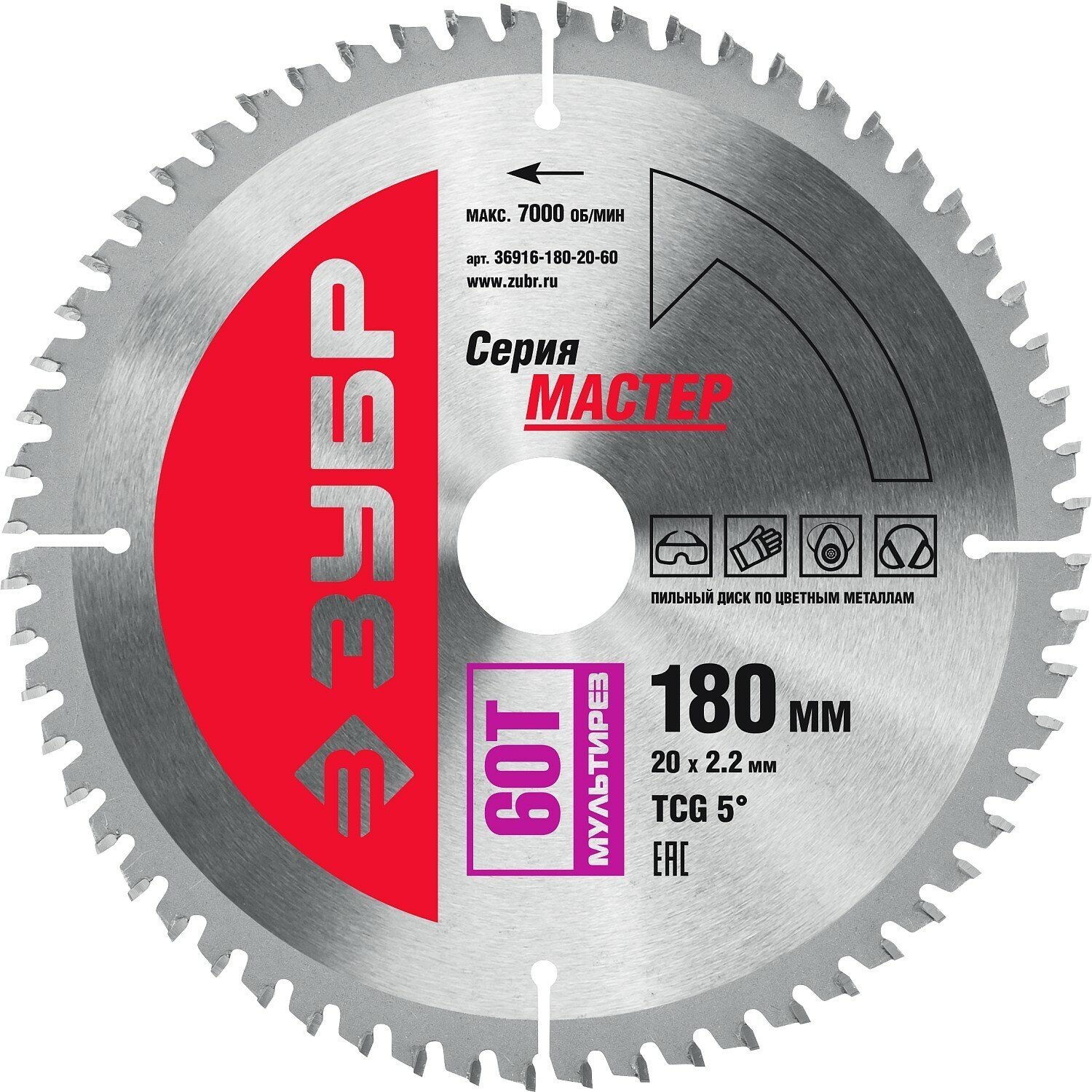Диск пильный твердосплавный ЗУБР 36916-180-20-60