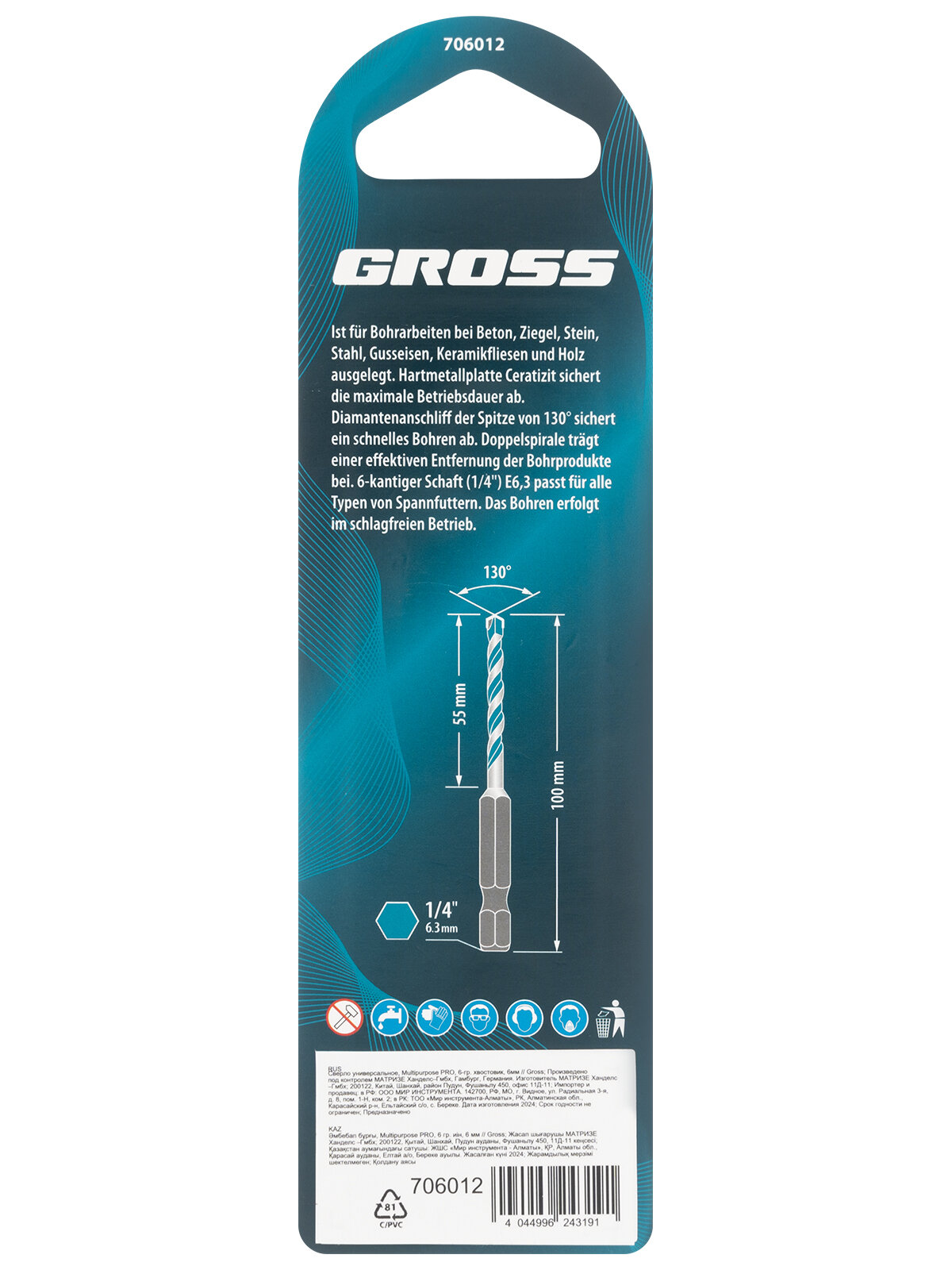 Сервис сравнения цен СкидкаГИД предлагает сравнить цены на товар «Набор сверл универсальных Gross PRO 6-гр. хвостовик 4-10мм 5шт Multipurpose 706017»