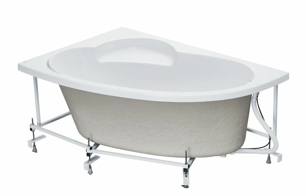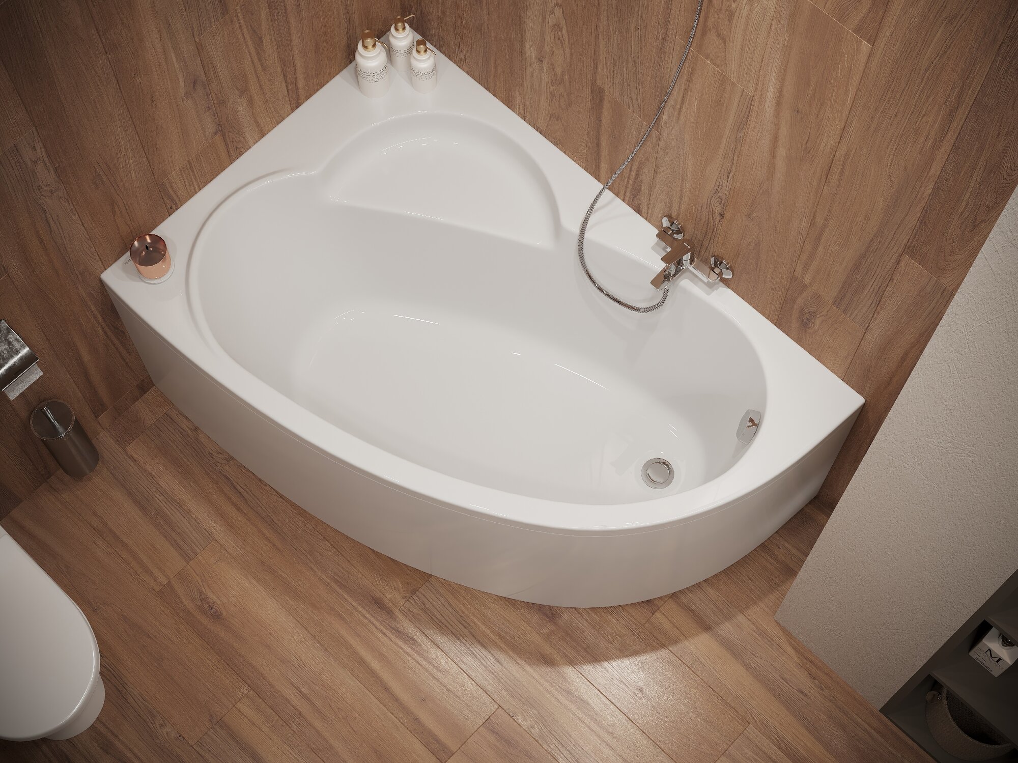 Белоснежная эргономичная ванна с пристенным типом установки с правой стороны наделена стандартным расположением перелива. Сантехника изготовлена из литого нетоксичного акрила с высокими показателями прочности. При желании конструкцию можно устанавливать в углу.