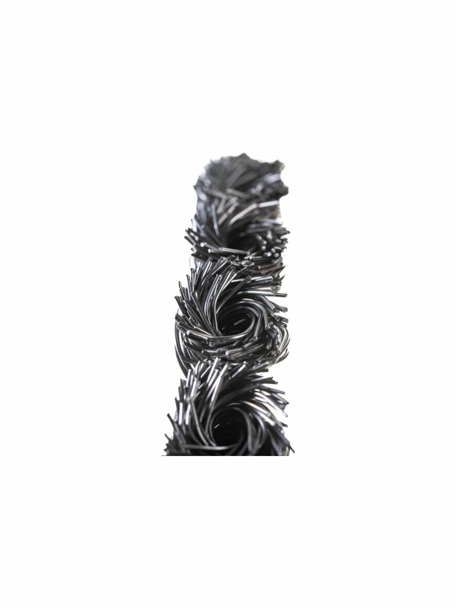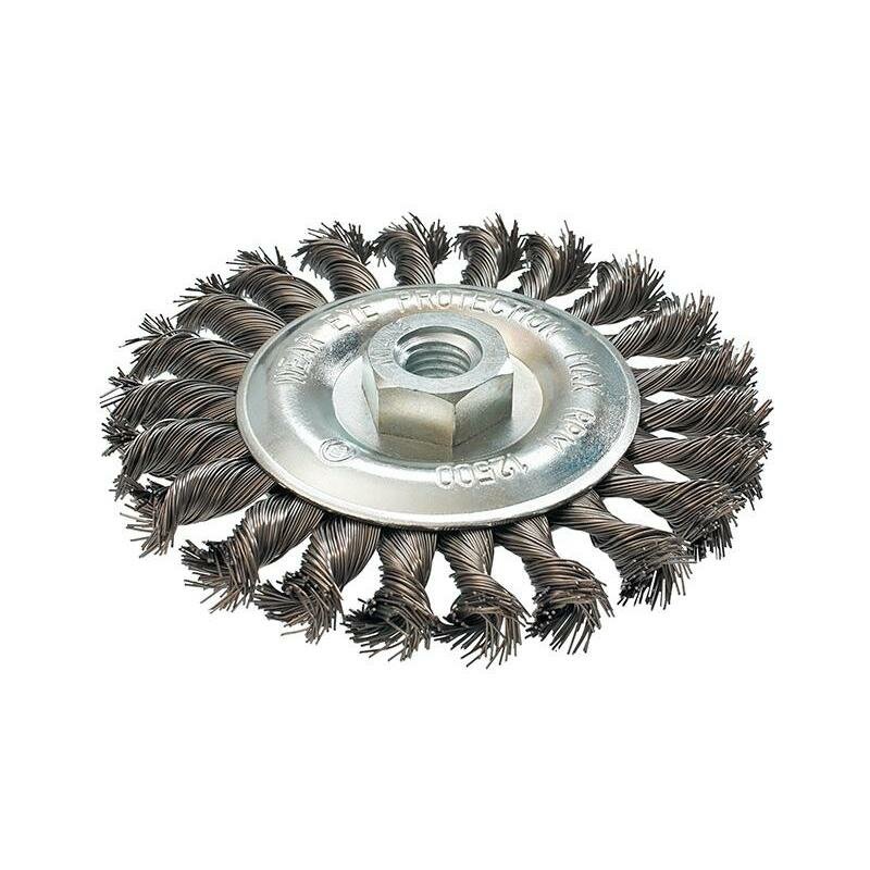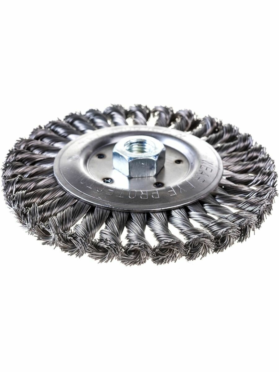 Радиальная кордщетка для углошлифмашины Практика допускает в процессе рабочего применения вращение со скоростью до 9000 об/мин. Соединенные в жгуты пучки стальной проволоки, образующие рабочую часть насадки, не оставляют глубоких царапин на поверхности деталей. В комплекте вам предлагается одна такая единица оснастки для работ по металлу.