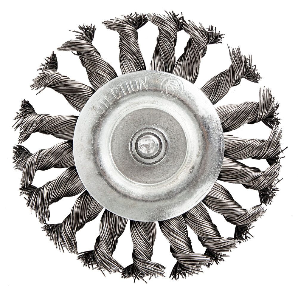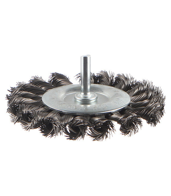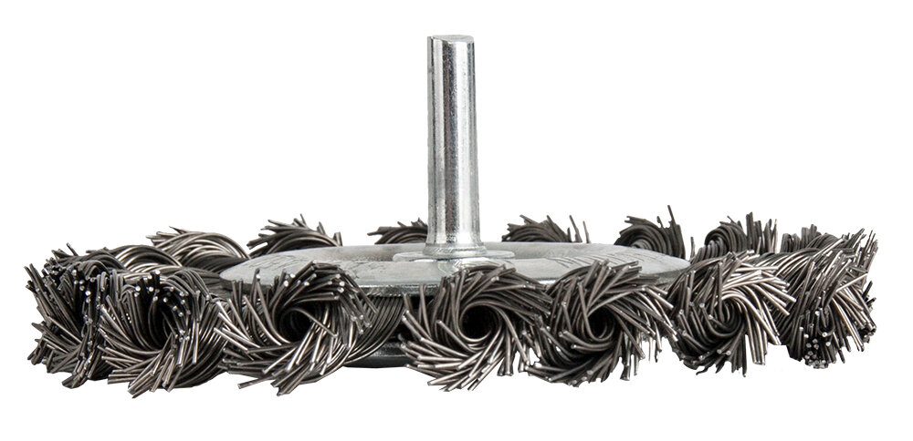 Кордщетки радиальные витые с хвостовиком. Серия "Мастер". Кордщетка для дрели. Хвостовик 6 мм для закрепления в патроне. Витая стальная проволока. Для грубой обработки деревянных и металлических поверхностей, снятия краски, ржавчины.