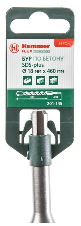 Бур HAMMER Ф18х460мм SDS Plus ()Бур Hammer Flex SDS+ 18х380/460мм Стандарт бура DIN 8035. Высококачественная инструментальная сталь 40Cr эффективно сопротивляется ударным нагрузкам. Двойная спираль S4 для обеспечения быстрого выведения шлама и охлаждения бура. Хвостовик для перфораторов с приводом SDS-plus.