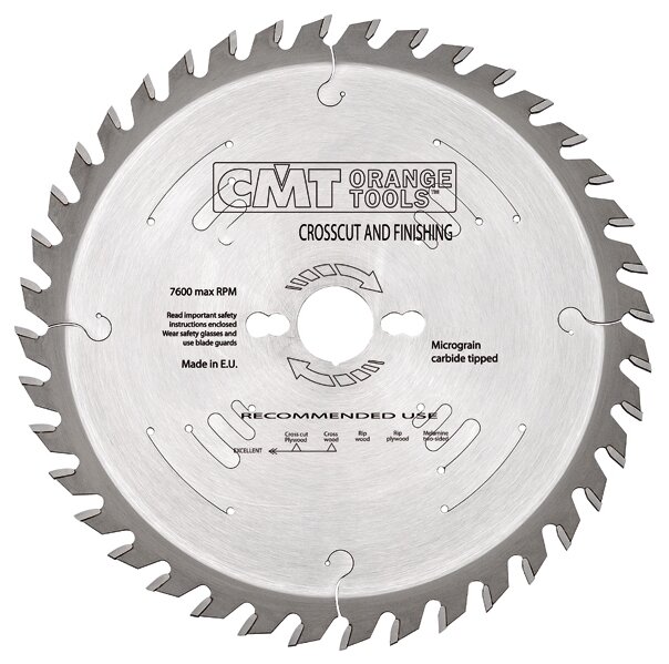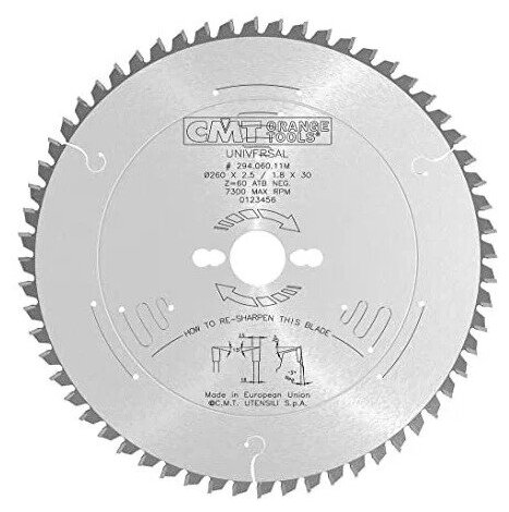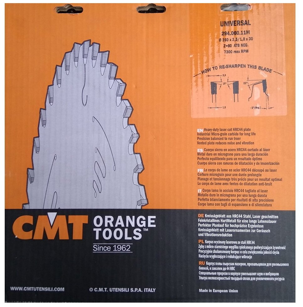 Пильный диск универсальный для продольного и поперечного пиления серии 294. Серия пил CMT c "косозубой" заточкой ATB, с режущими напайками из особо твёрдого сплава. Специально выверенное количество зубьев позволяет хорошо справляться с пилением твёрдой и мягкой древесины, клееной фанеры, МДФ, ДСП и OSB. Пилы оставляют ровные и чистые края обрабатываемой поверхности. Применение - чистовое продольное пиление и хорошее поперечное пиление. Оборудование - настольные и ручные циркулярные пилы, циркулярные станки, пилорамы, обрабатывающие центры. Материалы мягкая или твёрдая древесина, фанера, OSB.