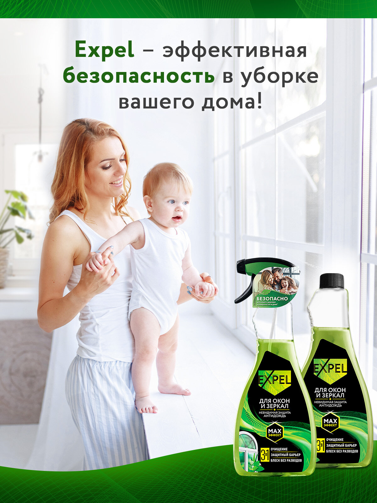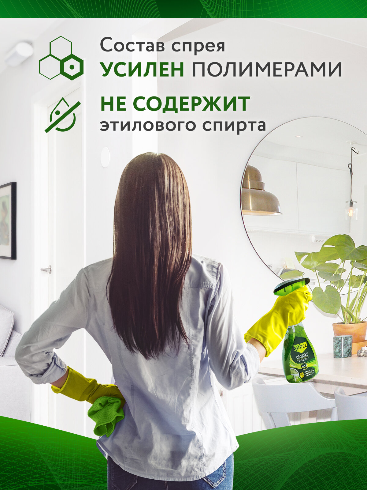 Чистые окна и зеркала — это не только выглядит эстетично, но и создает атмосферу и уют в доме !Но как часто приходится бороться с пятнами от зубной пасты на зеркале в ванной, отпечатками пальцев или даже следов от мокрого носа вашего домашнего любимца на глянцевых поверхностях? Такие загрязнения появляются мгновенно, а вот убрать их без разводов бывает непросто.Спрей для мытья окон и зеркал Expel Мега Блеск создан для идеальной чистоты без усилий. Формула с нашатырным спиртом моментально растворяет даже стойкие загрязнения. Избавляет от налета, водных разводов, следов от косметики или моющих средств. Благодаря спрею Expel Мега блеск – стеклянные, зеркальные, керамические поверхности, изделий из хрусталя, керамики и фарфора становятся более прозрачными и сияющими. А за счет антистатического эффекта пыль не оседает на поверхностях - стекла и зеркала дольше остаются чистыми.Средство имеет приятный ненавязчивый аромат. Благодаря спрею уборка проходит быстро и без усилий.