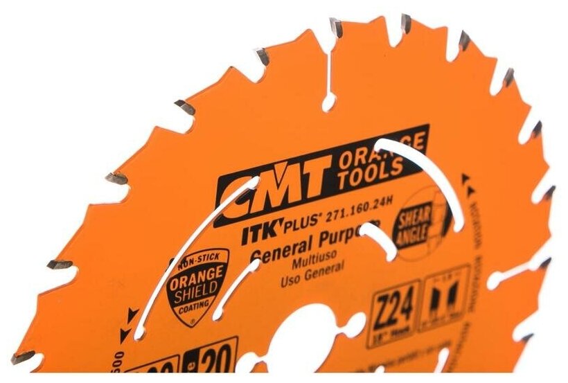 Пильный диск CMT изготовлен из высококачественной стали и затем закален до значения 44 по шкале твердости Роквелла. Он используется совместно с ручными циркулярными, торцовочными и аккумуляторными пилами. Зубья оснастки выполнены из твердого сплава и имеют специальную форму, благодаря которой снижается нагрузка на пилу и увеличивается скорость пиления. Специальные лазерные прорези на диске способствуют снижению шума и биения, которые вызываются вибрацией пилы во время работы. Антипригарное защитное покрытие пильного диска снижает его перегрев, уменьшает количество налипаемой грязи и защищает от коррозии. Подходит для продольного и поперечного пиления древесины любого вида. Пропил получается очень тонким.