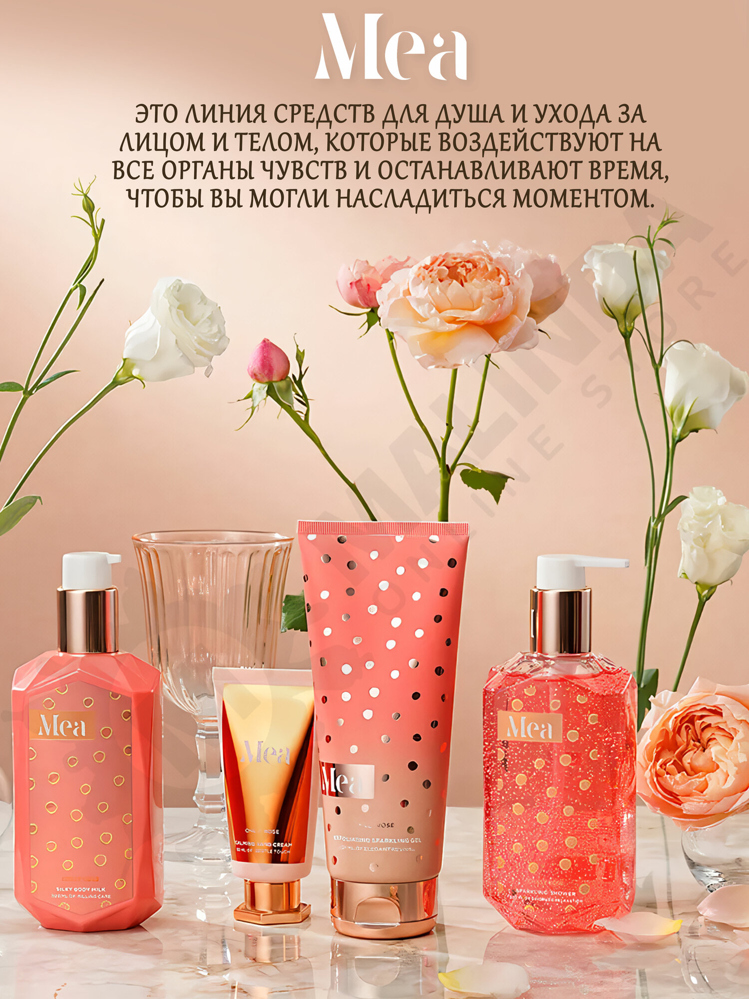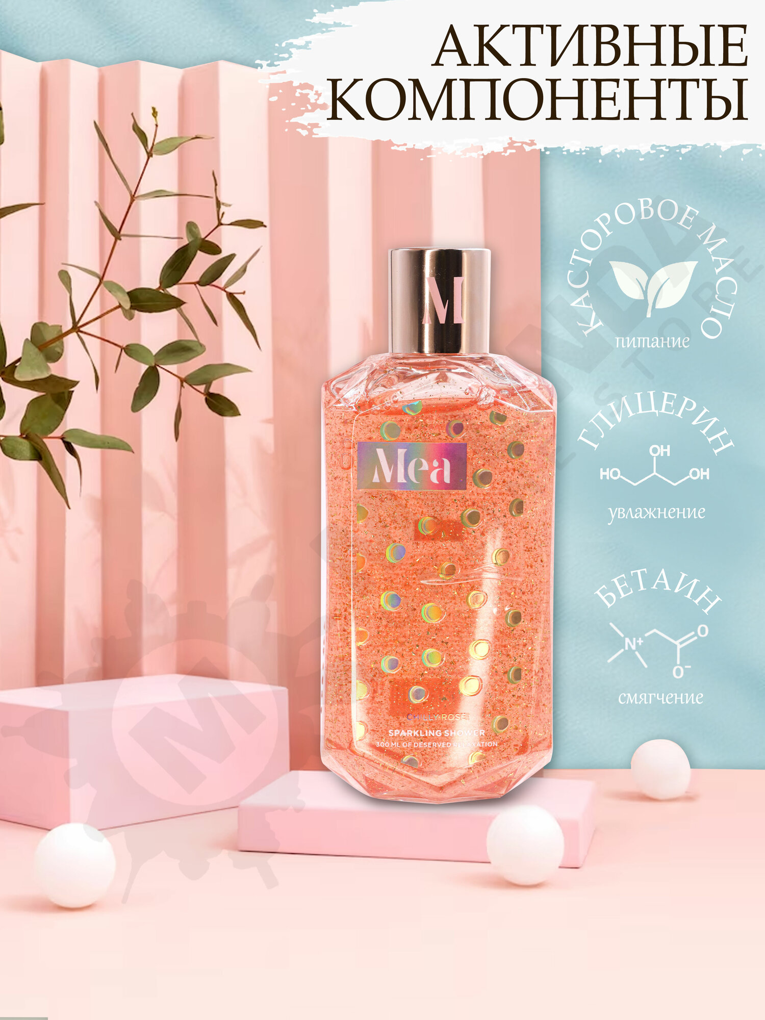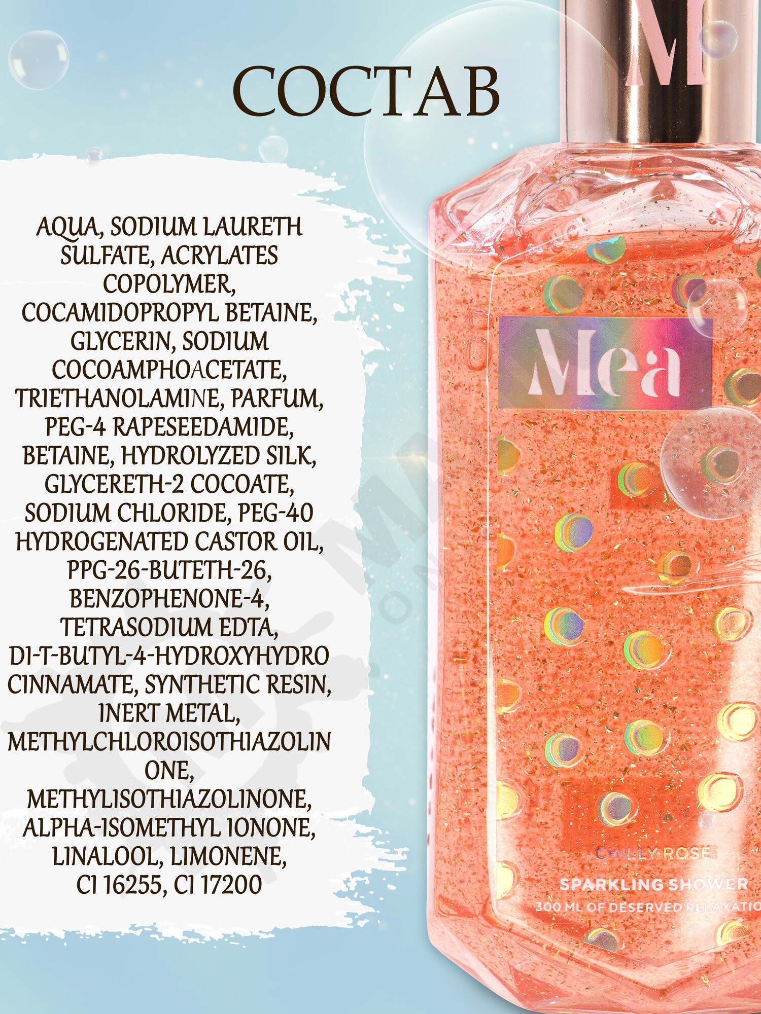 Глоток розе - игристый гель для душа, 300 мл заслуженного расслабления. Этот искрящийся гель с шиммерами с нежным слегка пьянящим ароматом – как глоток прохладного розе жарким летом. Миг, когда можно забыть обо всем на свете и просто расслабиться. И это заслуженное удовольствие теперь всегда на полке – стоит только протянуть руку. MEA – это линия средств для душа и ухода за лицом и телом, которые воздействуют на все органы чувств и останавливают время, чтобы вы могли насладиться моментом. MEA – чувственность, в которую хочется нырнуть с головой. В каждом флаконе, в каждом аромате таится воспоминание, желание. Разреши себе быть любимой. Прекрасной. Быть женщиной.