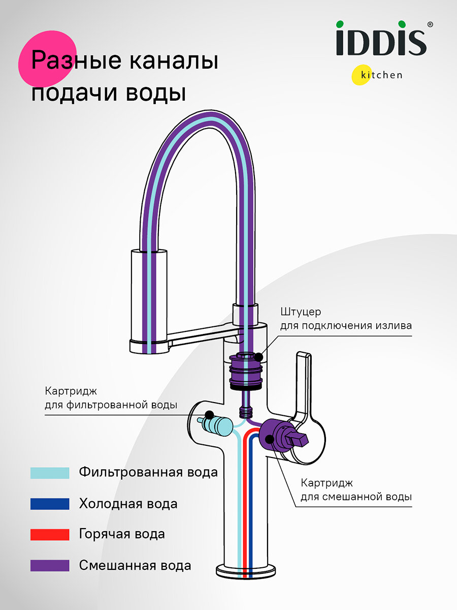 Смеситель для кухни Iddis Ikon не только практичное решение для санузла, но и стильный элемент сантехники. Смеситель Iddis Ikon с легкостью можно установить на любую кухонную мойку. Благодаря удобной конструкции однорычажных моделей, процесс регулировки температуры воды и интенсивность струи можно произвести одной рукой без особых усилий.