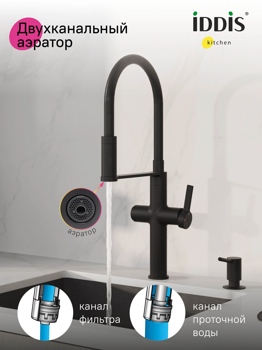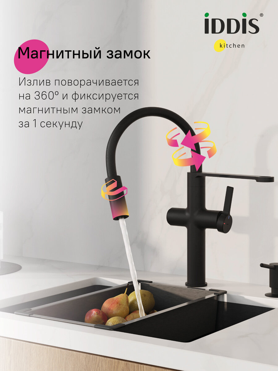 Смеситель для кухонной мойки Iddis Ikon черный матовый IKNBLFFi05