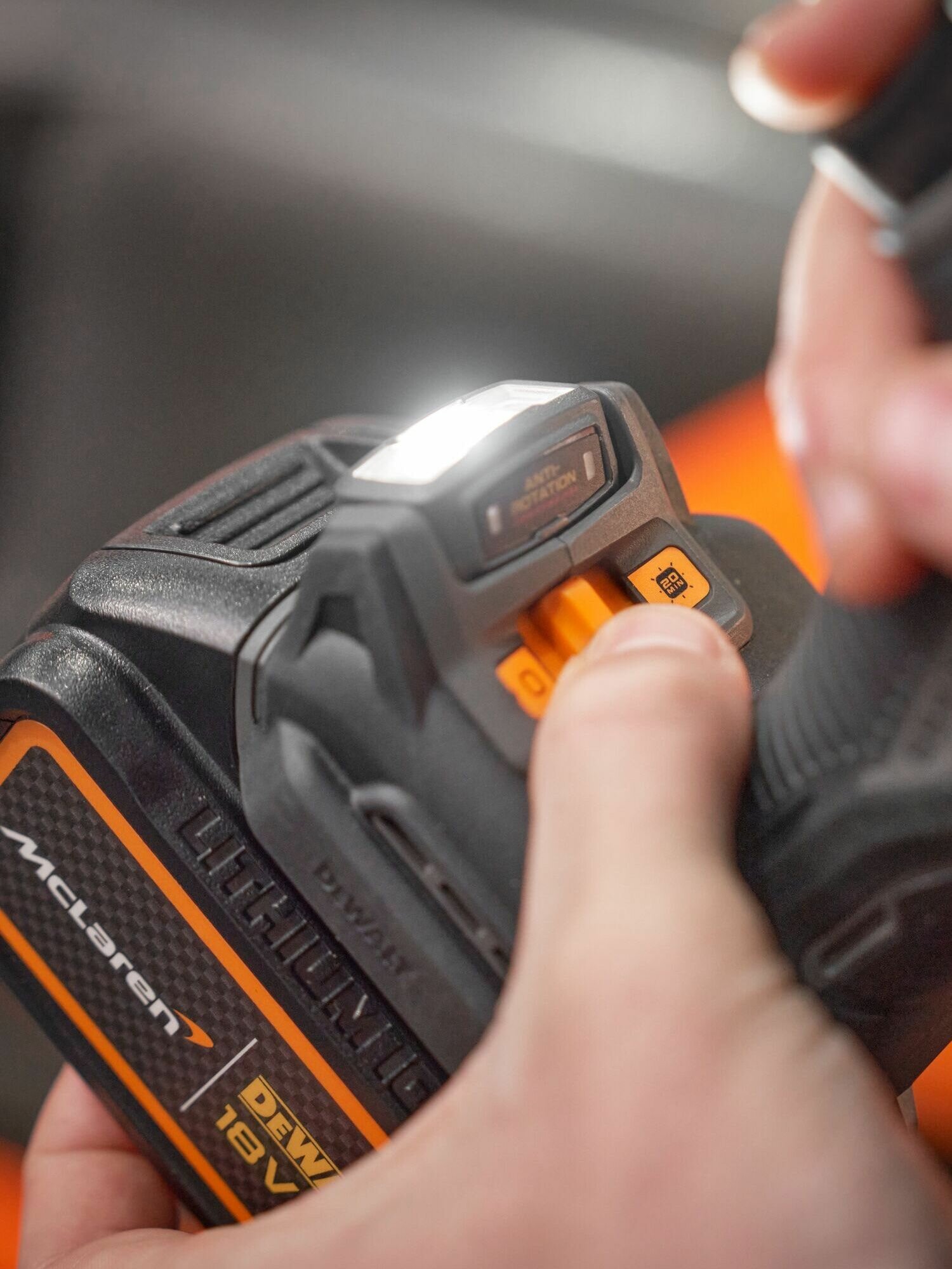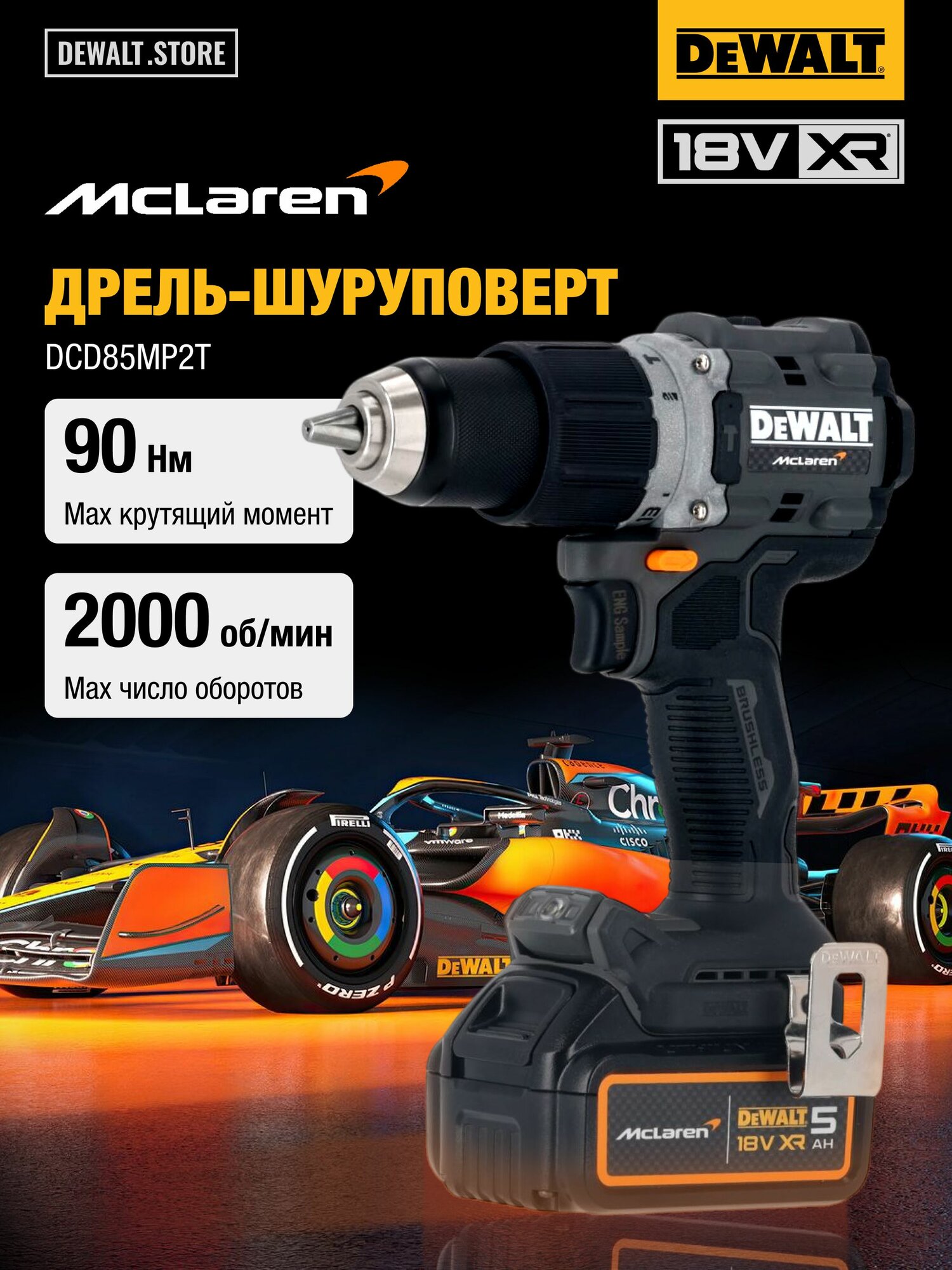 Всемирно известный бренд DeWALT стал официальным партнером по поставке инструментов для команды McLaren Formula 1. В знак дружеских отношений компания DeWALT недавно выпустила лимитированную серию инструментов, в том числе дрель-шуруповерт DCD85ME (на базе DCD805). Инструмент оформлен в стилистике McLaren под карбон, выглядит эффектно. В комплект входят два аккумулятора McLaren Edition 18V 5 Ач и зарядное устройство. Набор поставляется в кейсе TSTAK черного цвета.