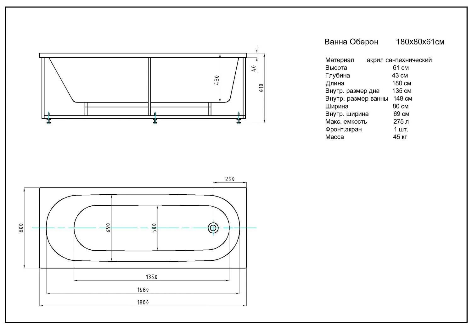 Акриловая ванна Aquatek Оберон 180x80 OBR180-0000141 белая