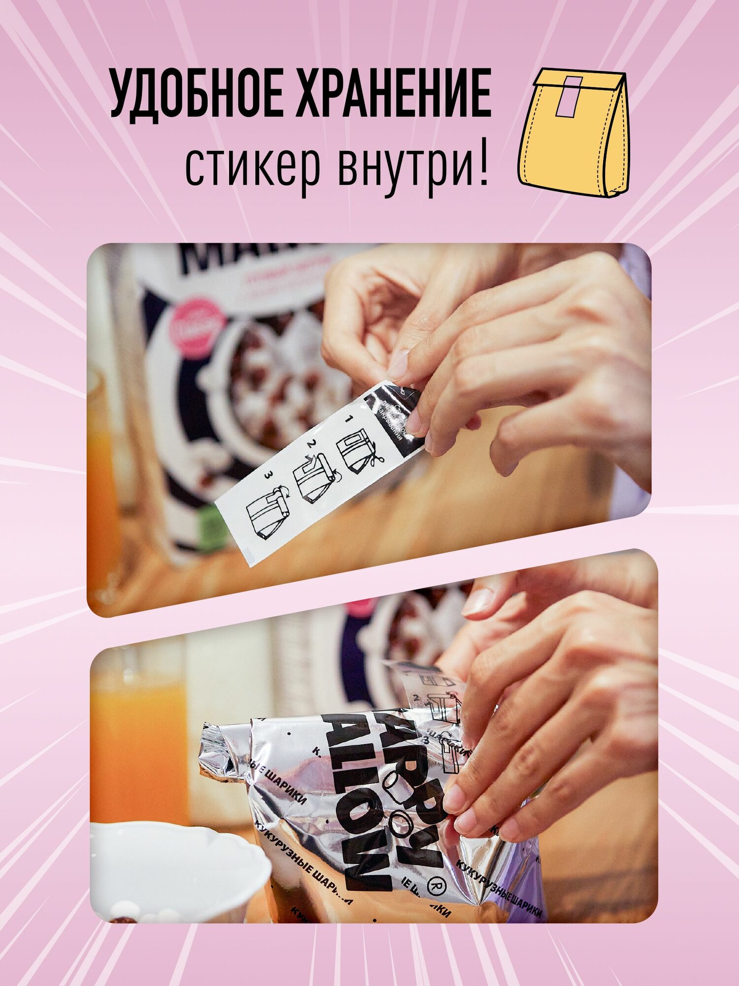 | Состав | Шарики состав: крупа кукурузная, сахар, декстроза, какао-порошок, патока крахмальная, соль, масло кукурузное, ароматизатор натуральный: шоколад. Маршмеллоу состав |