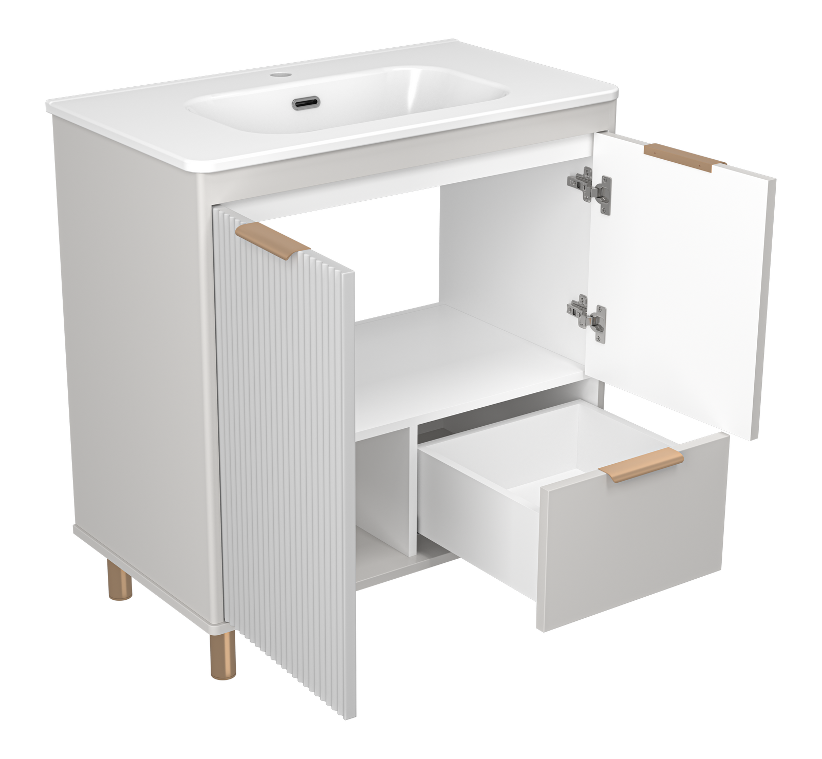 Тумба под раковину без столешницы Brevita Risacca 80 напольная не только восхитительное украшение для ванной комнаты, но и идеальное функциональное решение любого санузла. Напольный способ установки производится непосредственно на пол, при этом конструкция максимально устойчива при серьезных физических нагрузках.