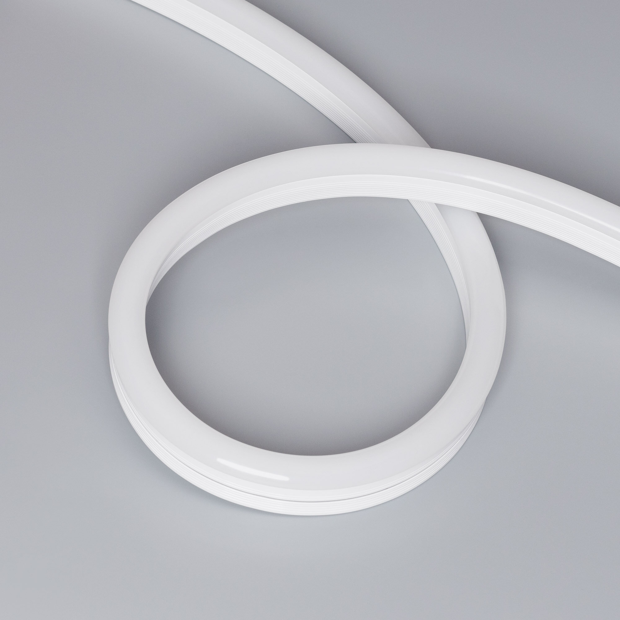 Гибкая герметичная лента (неон серии HALO), сечение 15×25 мм. Светодиоды SMD 2835 160 шт/м. Цвет свечения ДНЕВНОЙ (4000 К), индекс цветопередачи CRI>80, световой поток 480 лм/м, угол излучения 197°. Мощность 10 Вт/м, питание 24 В. Класс пылевлагозащиты IP67. Размеры 5000×15×25 мм. Мин. отрезок 50 мм. Горизонтальный изгиб SIDE, минимальный радиус изгиба 125 мм. Вывод кабеля с одной стороны. Катушка 5 м. Цена за 1 м. Гарантия 3 года.