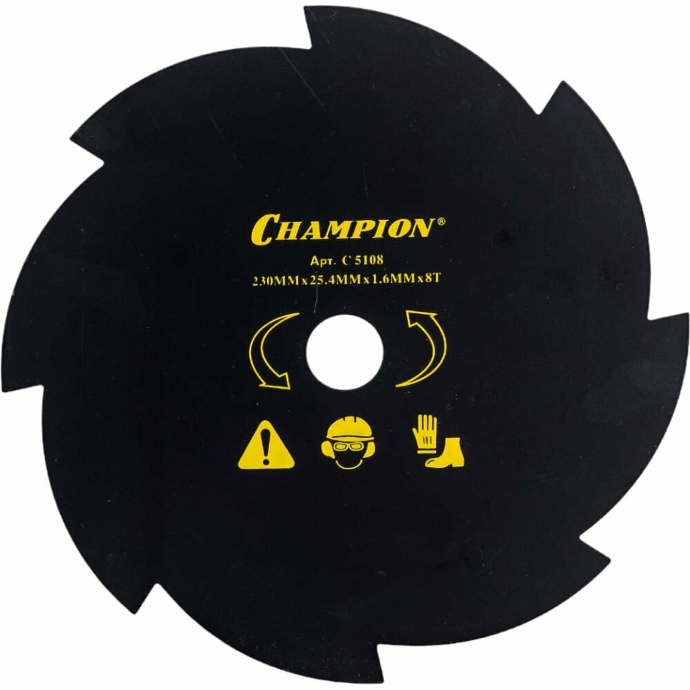 Нож для жесткой травы Champion . Для скашивания густой сухой травы и камыша. Для триммеров с объемом двигателя от 30 см3. Количество зубьев - 8. Внешний диаметр 230мм. Диаметр посадочного отверстия 25,4мм.