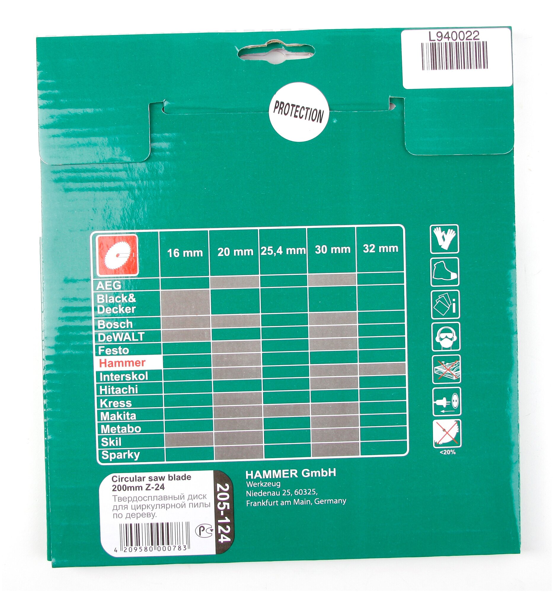 | Название на английском | Circular Saw Blade Hammer Flex 205-124 CSB WD 200мм*24*32/30мм wood |