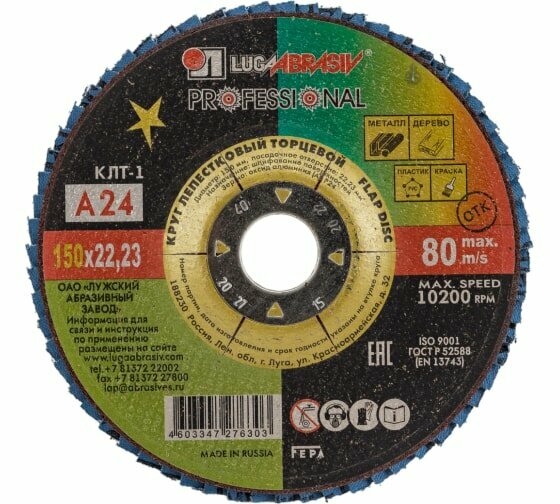 Круг Лепестковый Торцевой (КЛТ) ЛУГА-АБРАЗИВ КЛТ1 150 Х 22 Р 24 (№63)