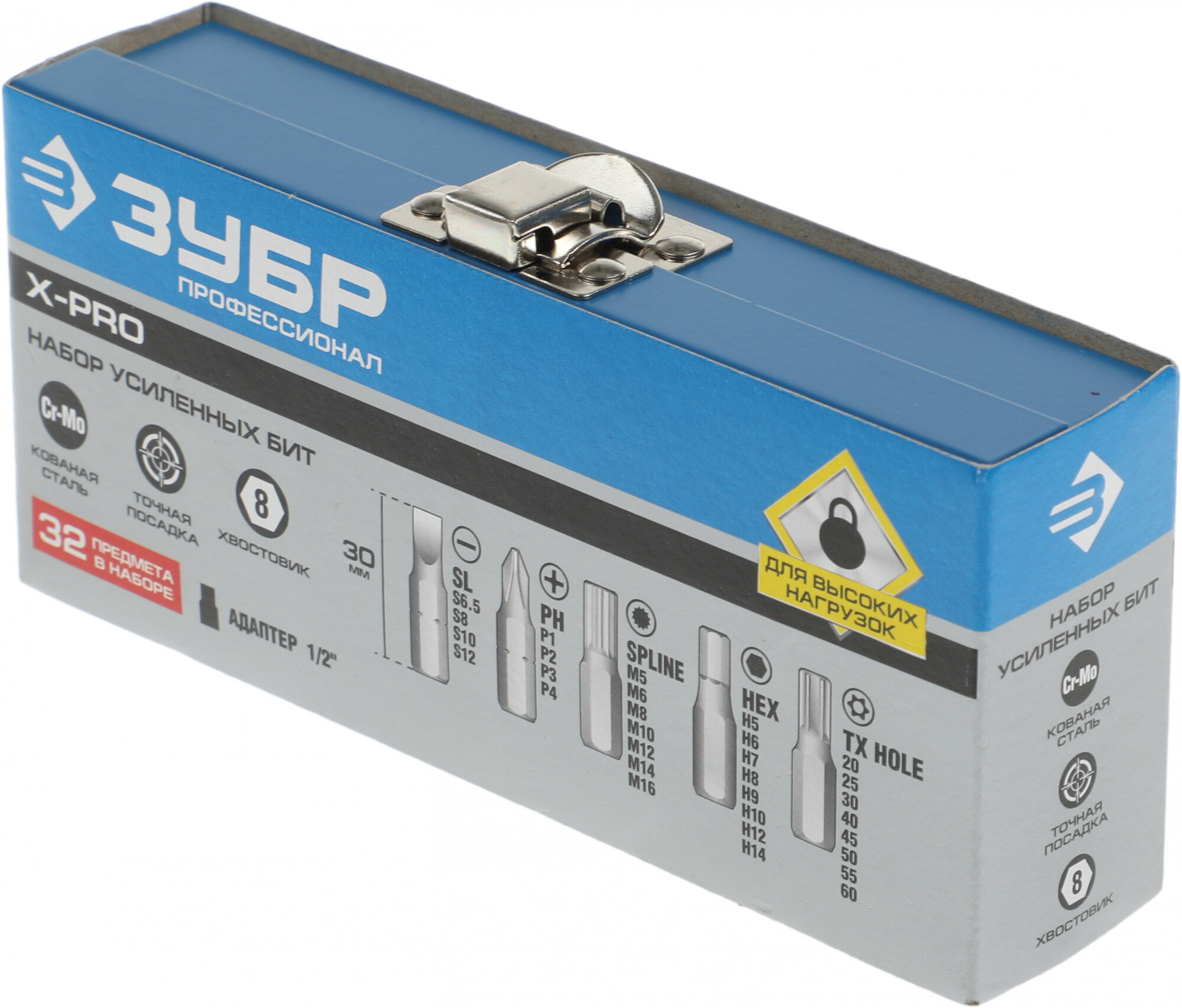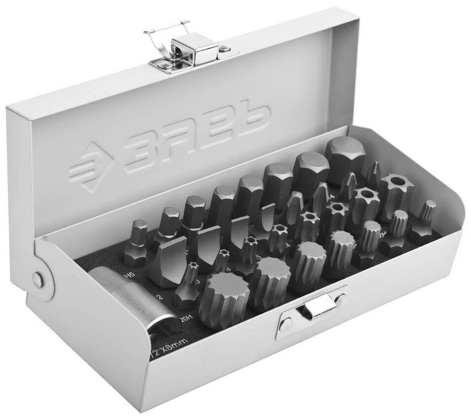 Биты Зубр 2655-H32 специальные в металлическом боксе, PH, SL, HEX, TORX, SPLINE, 32 предмета