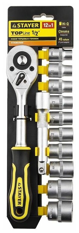 Функциональный набор торцовых головок из закаленной инструментальной стали с хромированным покрытием для монтажа и демонтажа крепежа с внешним шестигранным профилем. Наборы торцовых головок STAYER TOPLine изготовлены из качественной стали, универсальны в использовании и доступны по цене. Торцовые головки изготовлены из закаленной инструментальной стали и обладают оптимальным балансом прочности и твердости. Хромированное покрытие надежно защищает от коррозии.