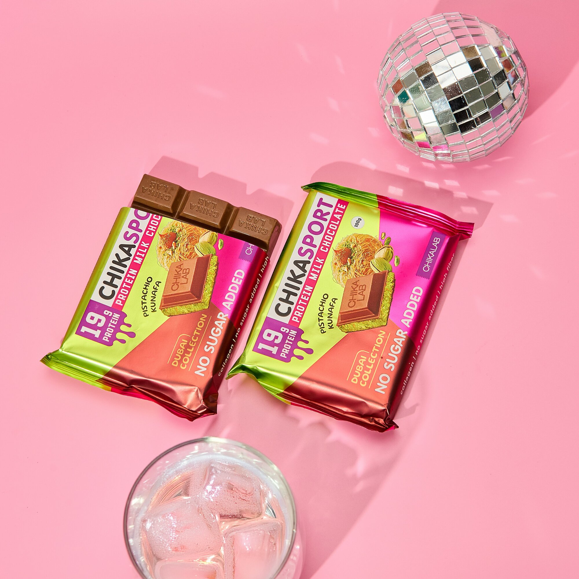Chikalab представляет изысканный протеиновый десерт, в основе которого лежит нежный молочный шоколад, гармонично сочетающийся с аутентичным хрустящим тестом катаифи, специально доставленным из Дубая, и ароматной фисташковой пастой. Вкус шоколада раскрывается при его легком подтаивании, а хрустящая начинка напоминает текстуру халвы. Благодаря использованию натуральных подсластителей и отсутствию сахара, шоколад не только вкусный, но и полезный для здоровья.