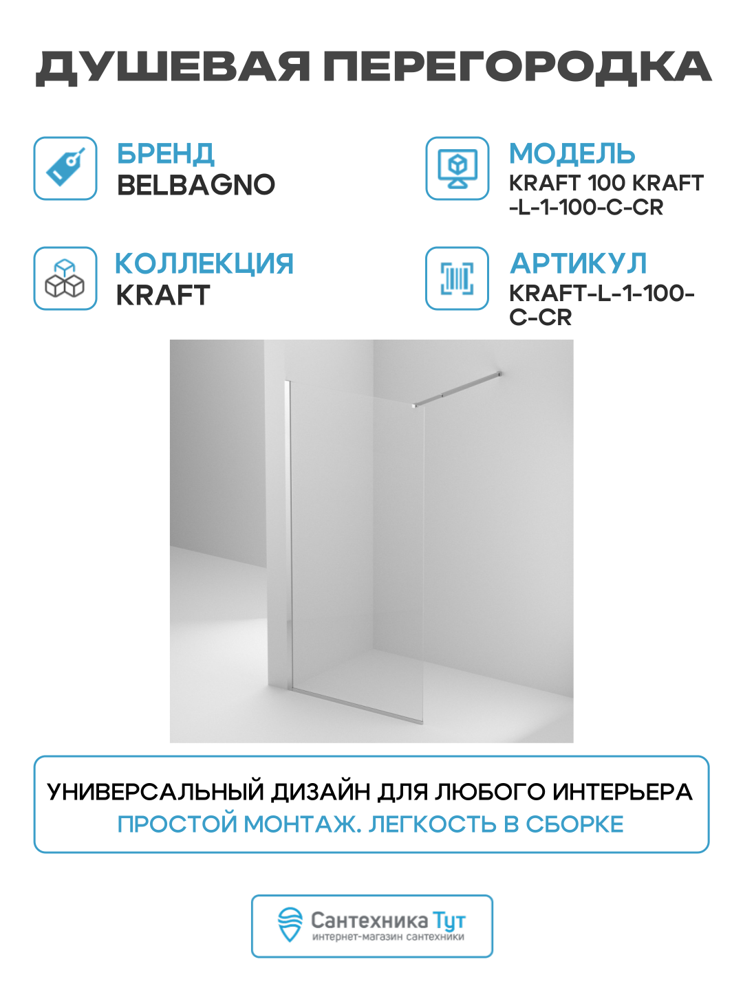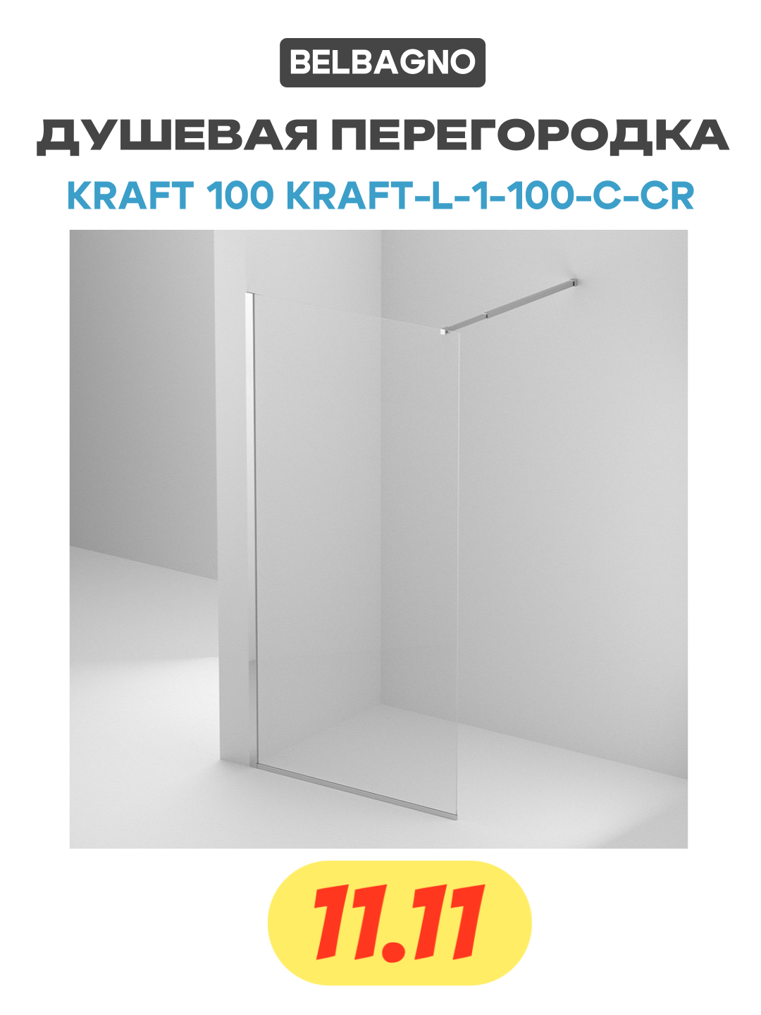 На сегодняшний день товар «Душевая перегородка BelBagno Kraft Walk In 100х195 KRAFT-L-1-100-C-Cr стекло прозрачное, профиль хром» можно купить с кешбеком в 3 магазинах: Santehnika-room, Сантехника Тут, dushevoi