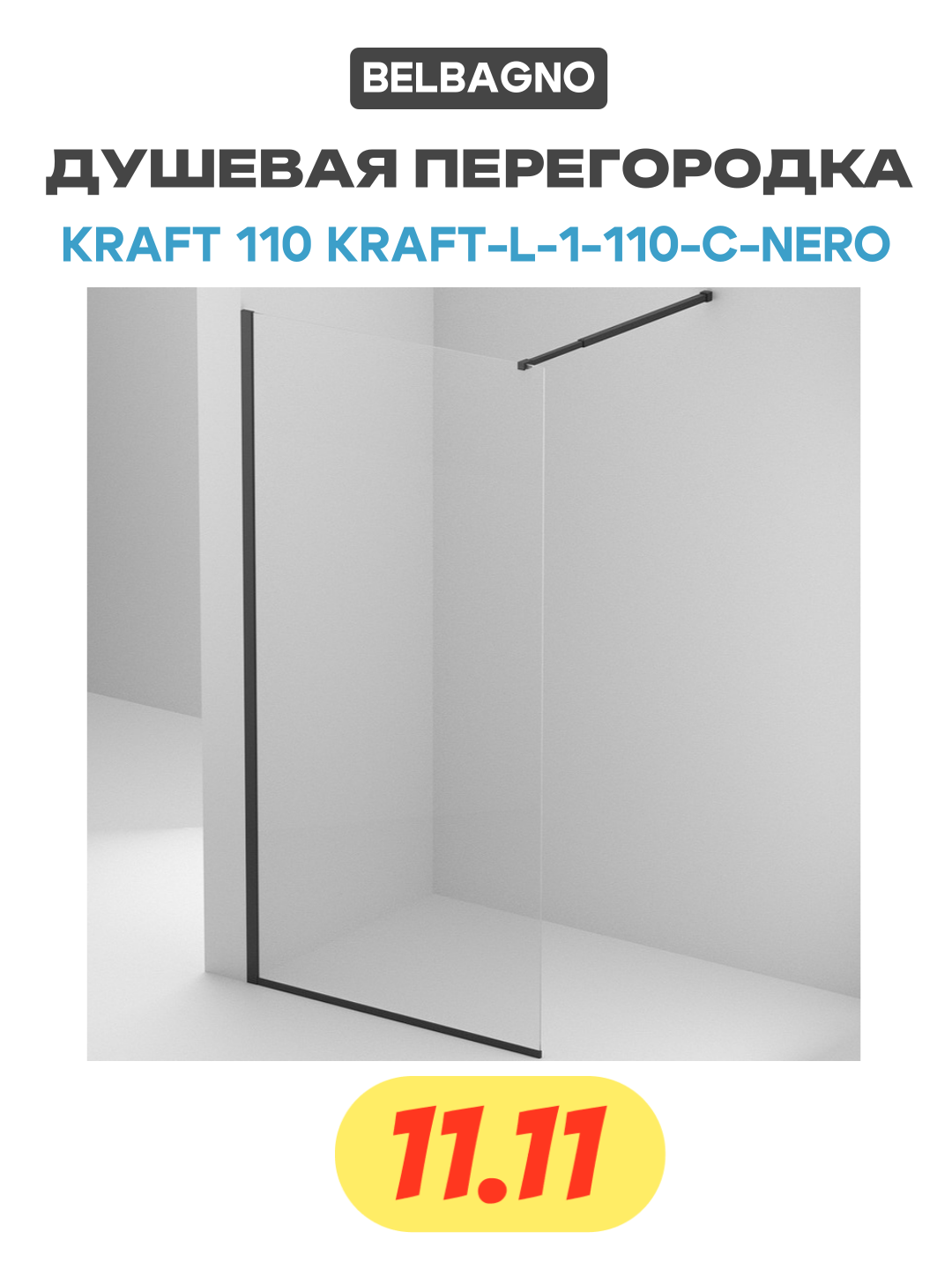 Сервис сравнения цен СкидкаГИД предлагает сравнить цены на товар «Душевая перегородка BelBagno Kraft Walk In 110х195 KRAFT-L-1-110-C-NERO стекло прозрачное, профиль черный»