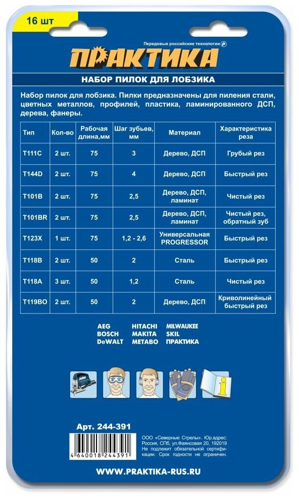 Универсальный набор пилок для лобзика ПРАКТИКА 244-391