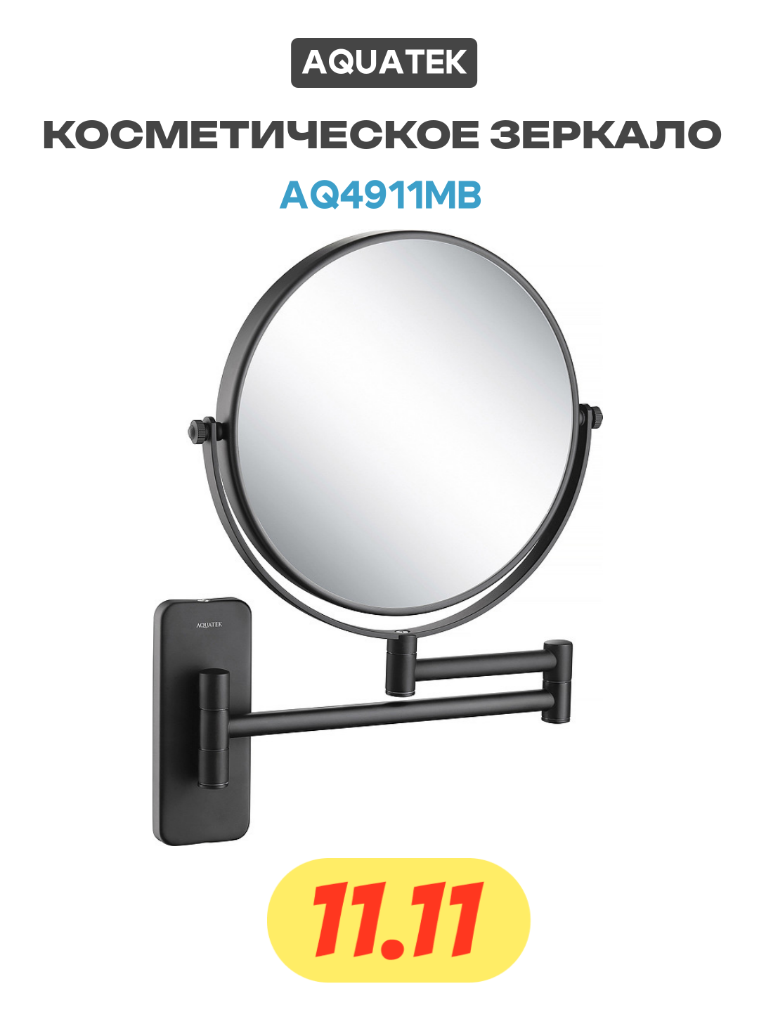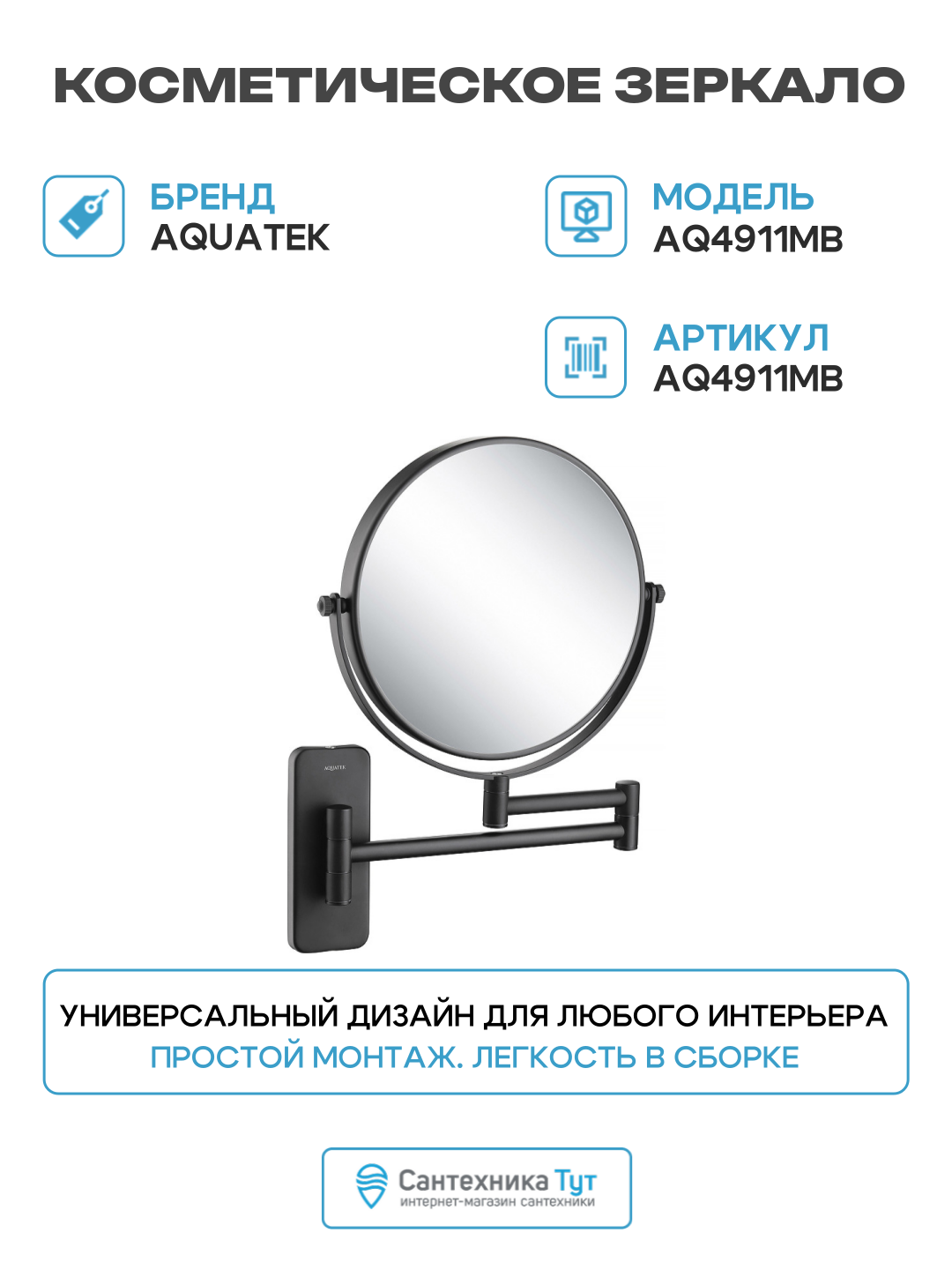 Зеркало косметическое Aquatek 24 см AQ4914MB черное матовое