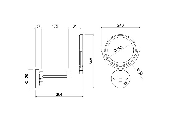 - Диаметр зеркала: 200 мм.