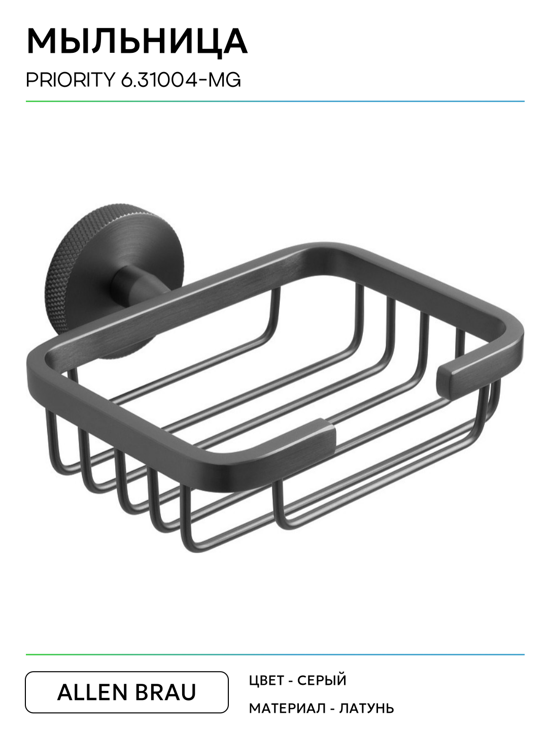 Мыльница Allen Brau Priority 6.31004-MG бесподобно подойдет как для просторного помещения, так и для небольшой ванной комнаты. Коллекция Priority выполнена в эксклюзивном дизайнерском решении в лучших традициях современного стиля.