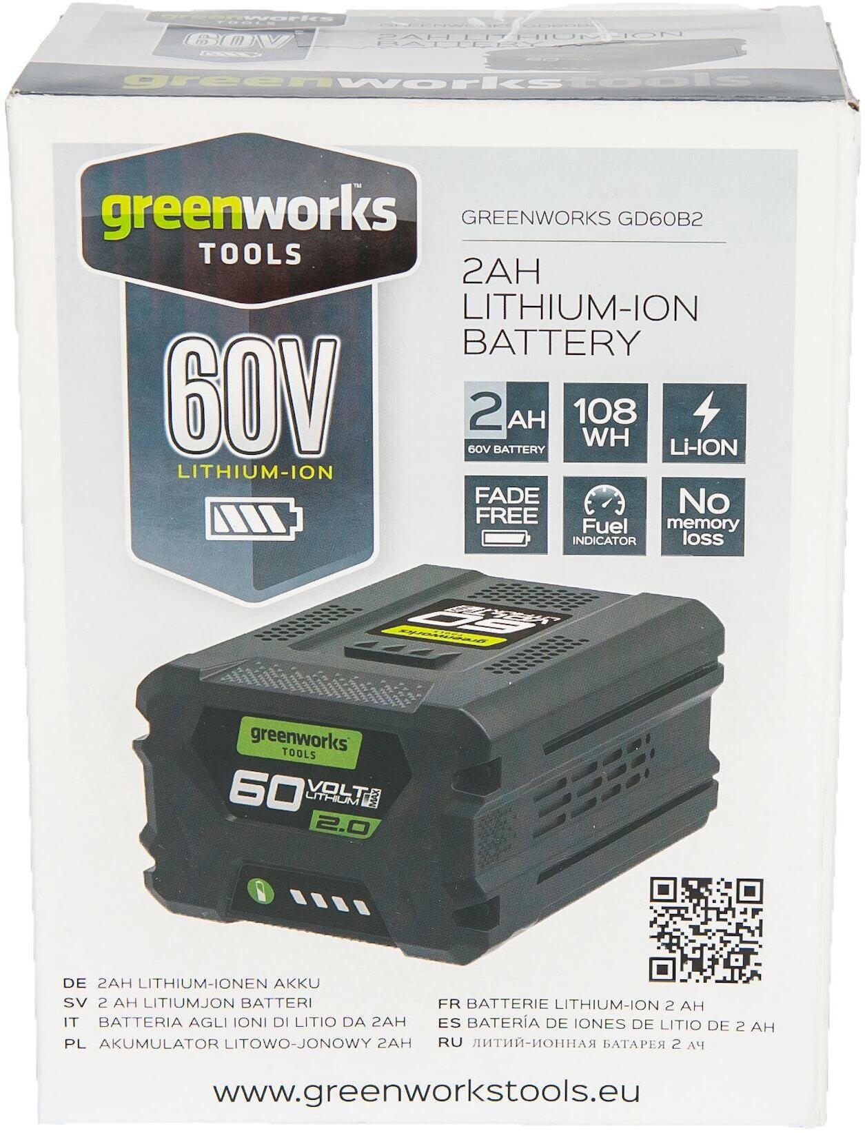 Аккумулятор GreenWorks 60V, 2 Ампер/часа, арт. 2918307, модель G60B2;