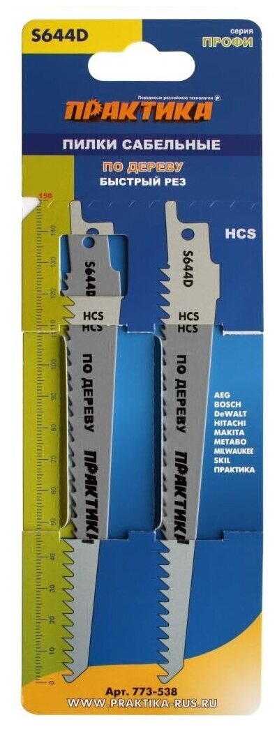 Сервис сравнения цен СкидкаГИД предлагает сравнить цены на товар «Пилки для сабельной пилы по дереву ПРАКТИКА 773-538 s644d 2шт.»