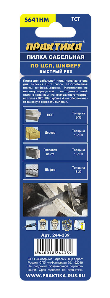 | Прочие характеристики и свойства | Длинные биметаллические пилки для сабельной пилы с зубами из высококачественной быстрорежущей стали характеризуются высоким ресурсом, используются для выполнения сложных работ. Волнистое полотно с фрезерованными зубами с шагом 4 мм для быстрого, грубого, пиления. Предназначены для пиления стали, дерева с гвоздями, металлических и пластиковых профилей, ДСП, обрезки веток, сучьев. |