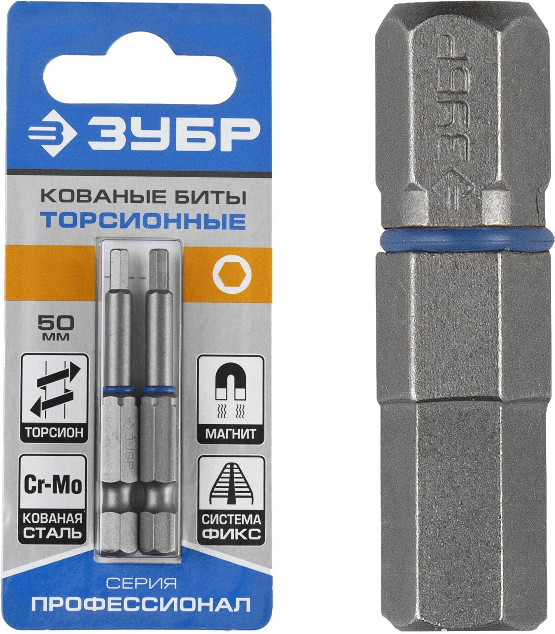 Биты Зубр Профессионал торсионные кованые, обточенные, хромомолибденовая сталь, HEX6, 2шт