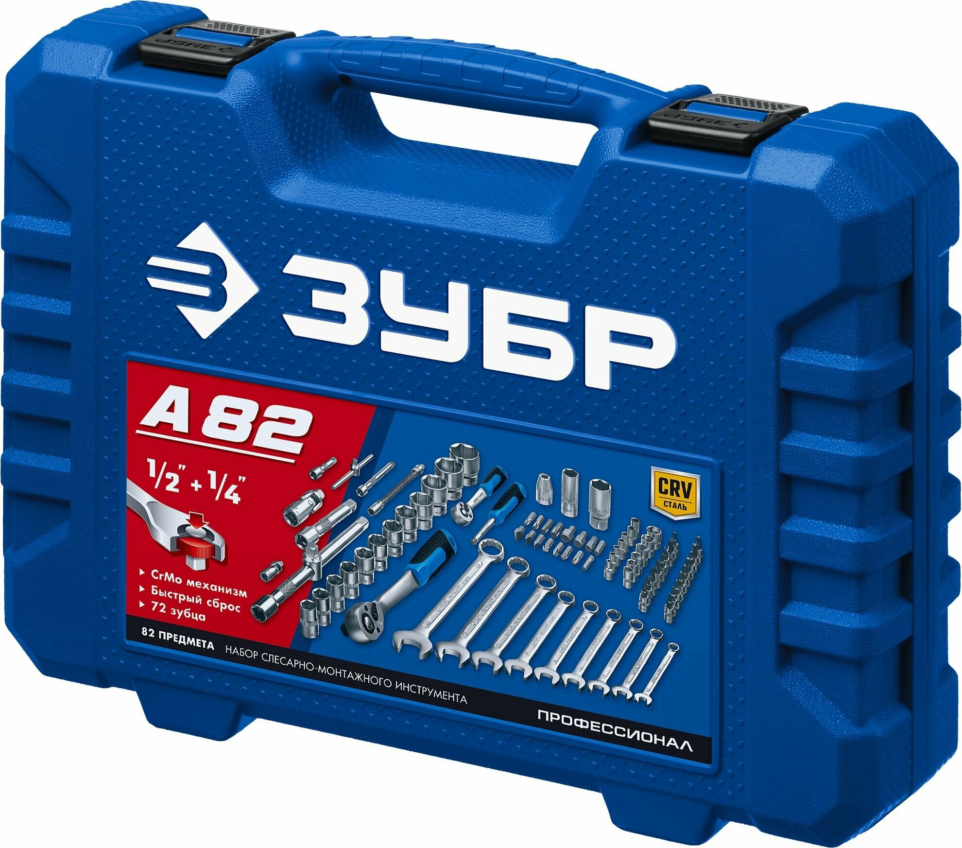 | Подробный состав комплекта | Профиль торцовых головок:6-гранный (FLANK) Присоединительный квадрат:1/2"+1/4" 80 предметов в наборе |