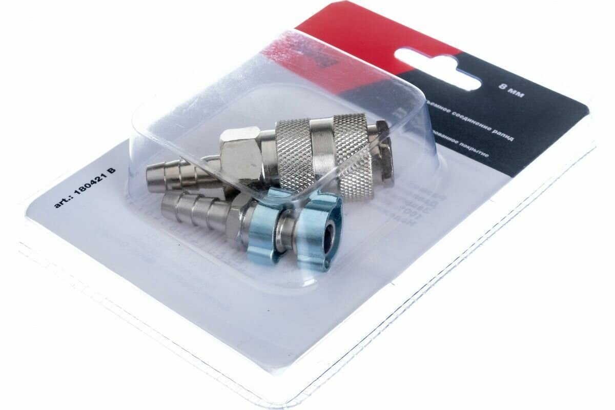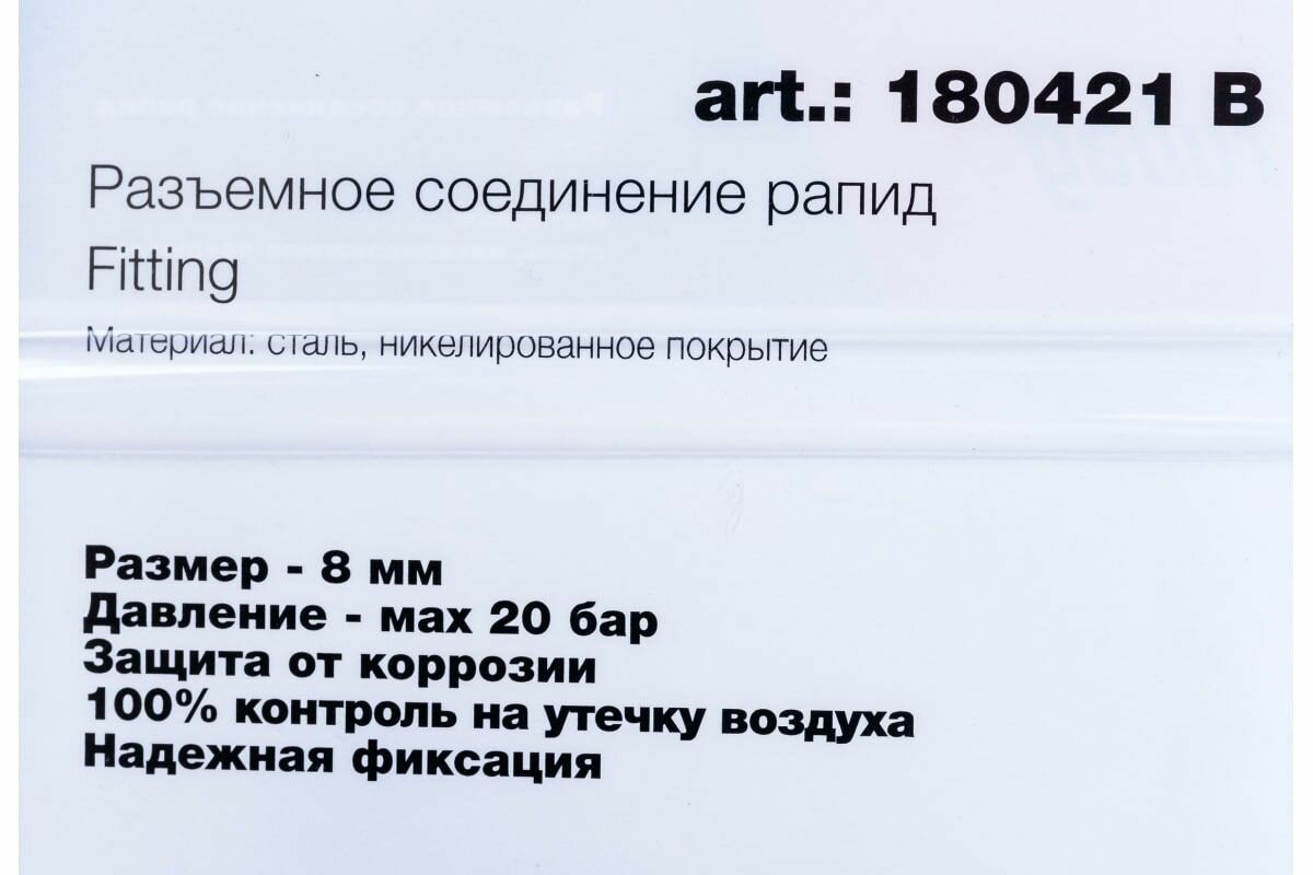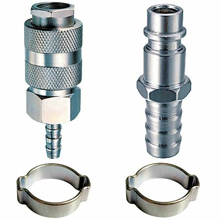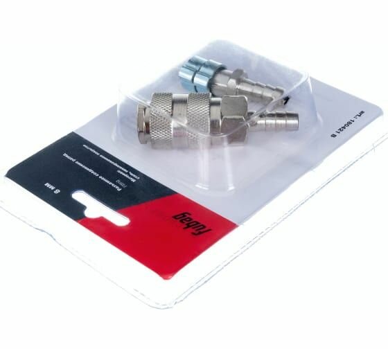 Набор FUBAG используется совместно с компрессорным оборудованием для соединения шланга с пневмоинструментом. Крепится к инструменту с помощью соединения "рапид", а к шлангу — "ёлочкой". В комплекте поставляется: фитинг "рапид" "мама"-"елочка", фитинг "рапид" "папа"-"елочка" и два обжимных кольца. Созданная конструкция обладает высокой надежностью и герметичностью. Поставляется в фирменной упаковке - "блистере".
