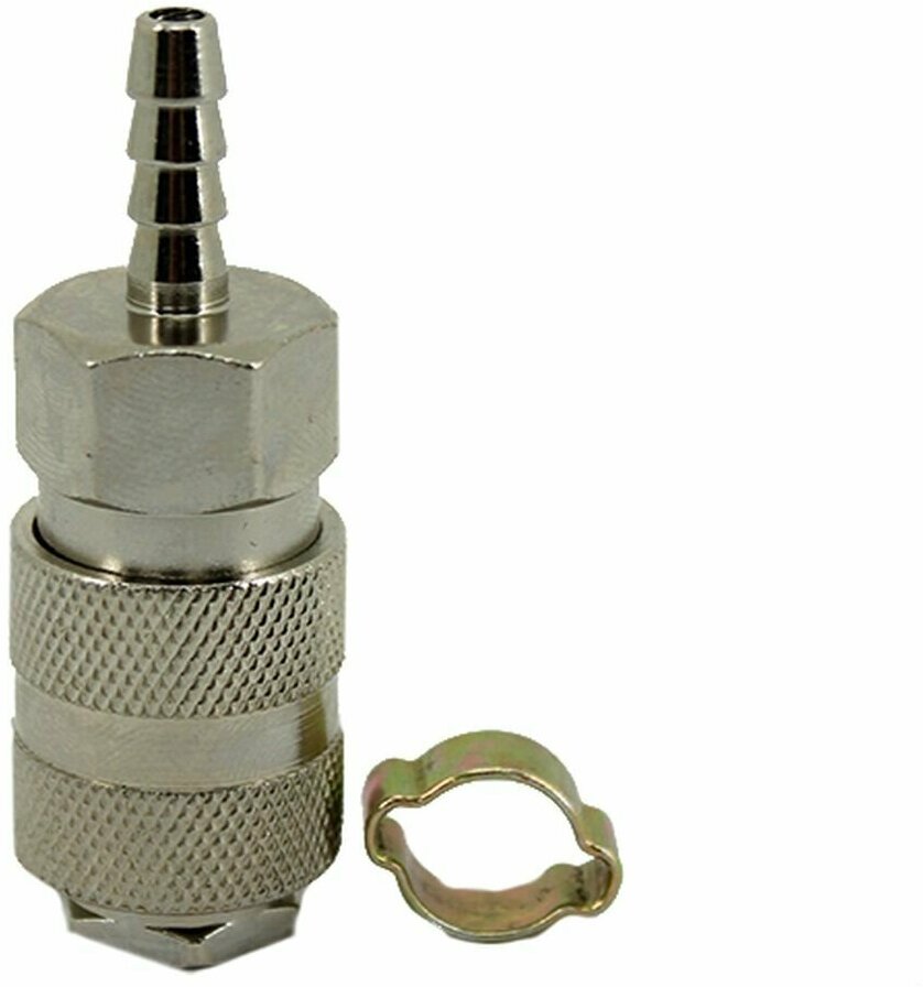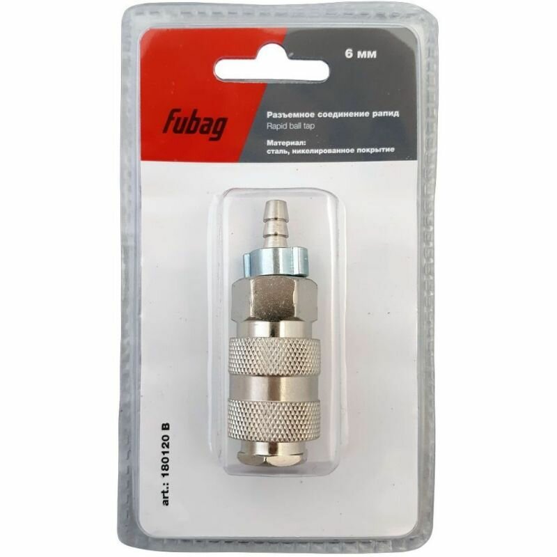 Переходник рапид — "елочка" FUBAG используется совместно с компрессорным оборудованием для соединения шланга с пневмоинструментом. Внутренний диаметр подсоединяемого шланга — 6 мм. Крепится к инструменту с помощью соединения "рапид", а к шлангу — "ёлочкой". В комплекте поставляется обжимное кольцо — 6х11 мм. Созданная конструкция обладает высокой надежностью и герметичностью.