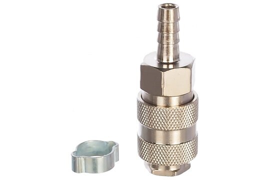 | Прочие особенности и свойства | Переходник рапид-елочка для подключения компрессора к пневмоинструменту с помощью шланга. Диаметр шланга 8 мм. Крепление к инструменту - рапид, к шлангу - елочка. Обжимное кольцо 8x13 в комплекте. |
